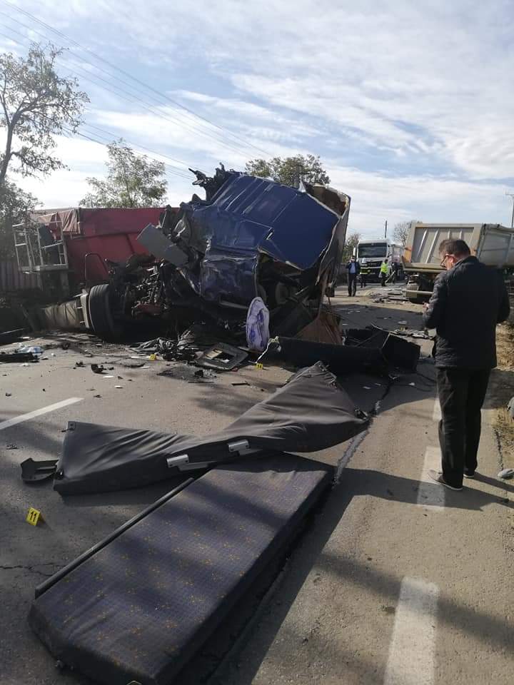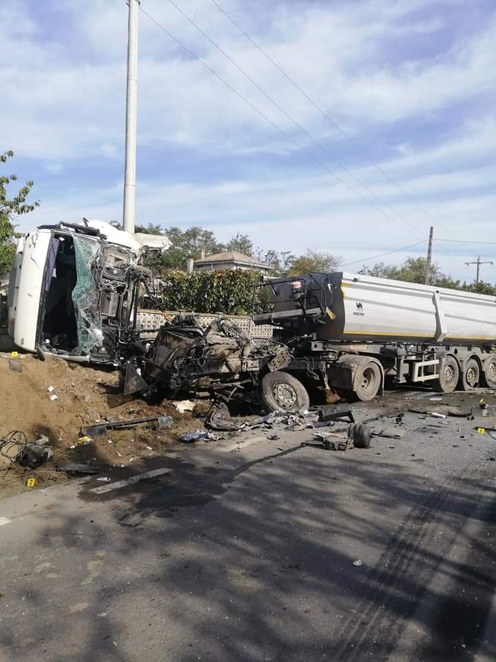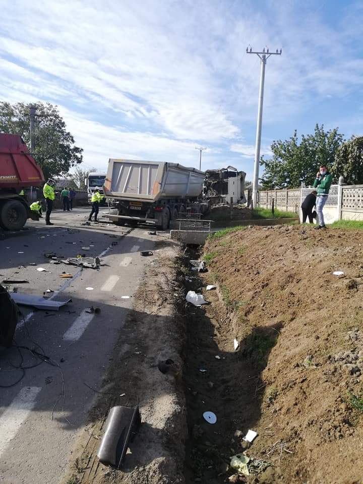 Iași: Accident rutier la Ruginoasa. Două autobasculante s-au ciocnit frontal