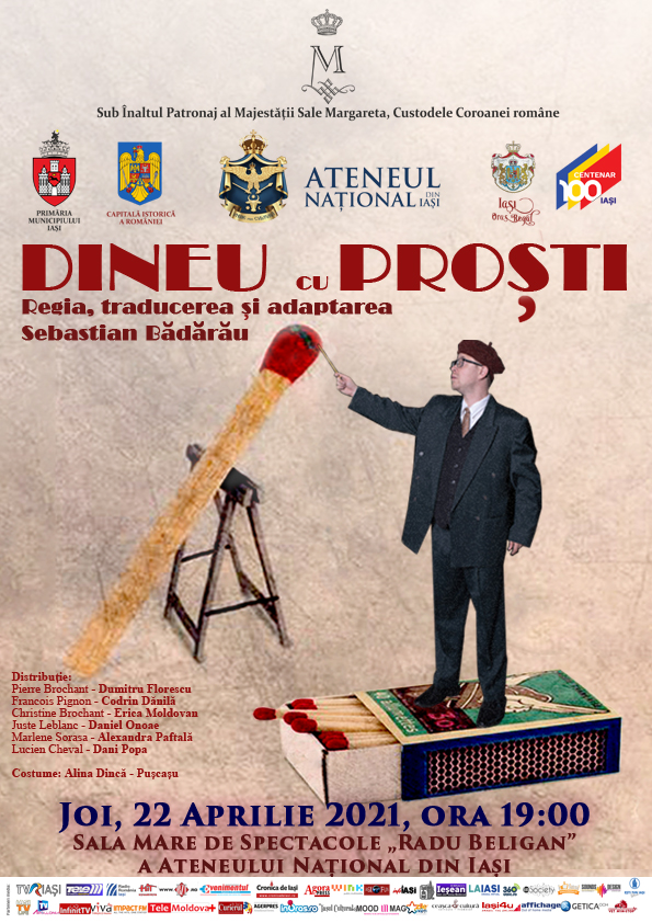 Săptămâna viitoare spectatorii sunt așteptați marți, 22 aprilie, de la ora 19. 00 la piesa de teatru „Cu capul în nori”, în regia lui Daniel Onoae, iar joi, 24 aprilie, de la aceeași oră, la „Dineu cu proști”, în regia lui Sebastian Bădărău.