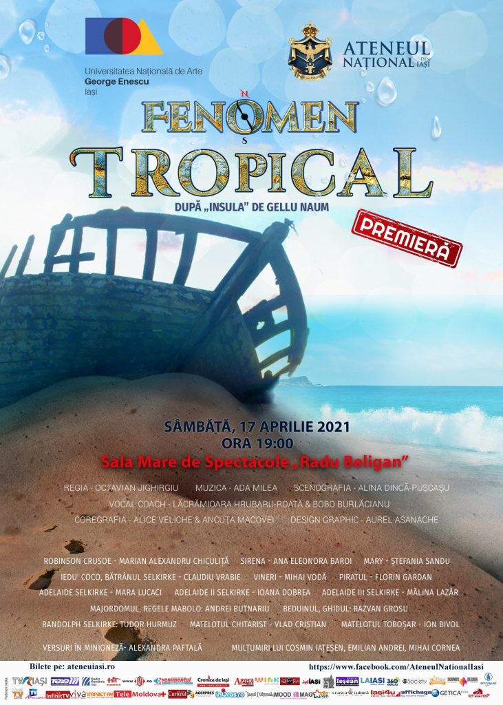 „Fenomen Tropical” este o adaptare după „Insula” de Gelu Naum, în regia lui Octavian Jighirgiu, pe muzica Adei Milea. Interpreții sunt studenți masteranzi ai Facultății de Teatru, scenografia este semnată de Alina-Dincă Pușcașu, coregrafia de Alice Veliche și Ancuța Macovei, iar pregătirea muzicală este realizată de Lăcrămioara Hrubaru-Roată și Bobo Burlăcianu.