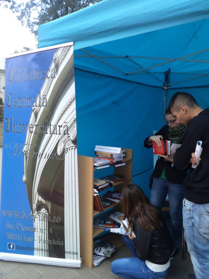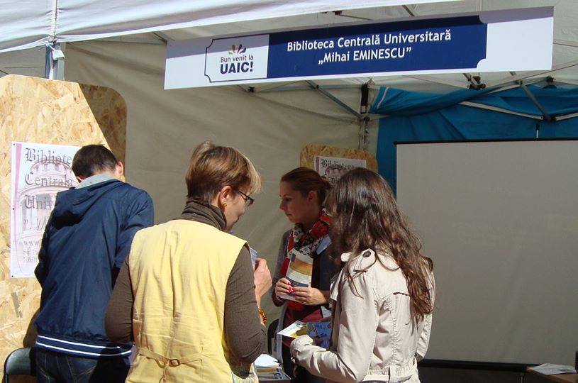 Studenții sunt așteptați la cortul BCU Iași cu materiale de prezentare a serviciilor bibliotecii (împrumut la domiciliu; împrumut în sălile de lectură; consultarea bazelor de date ştiinţifice; comandă online; împrumut interbibliotecar; „întreabă un bibliotecar”; bibliografii la cerere; vizite ghidate), cu informații referitoare la obţinerea permisului de bibliotecă (acte necesare, taxe, program), cu detalii privind posibilitatea de a face voluntariat în cadrul BCU Iași și cu date referitoare la cursul facultativ – Introducere în ştiinţele informării şi documentării, organizat de Facultatea de Istorie şi Facultatea de Litere a Universităţii „Alexandru Ioan Cuza” din Iași, în colaborare cu Biblioteca Centrală Universitară „Mihai Eminescu” Iaşi.