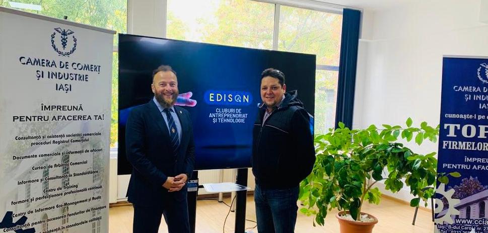 La Camera de Comerț și Industrie Iași s-au pus bazele consorțiului educațional EDISON – Cluburi de Antreprenoriat și Tehnologie, în cadrul unui eveniment în care ideea proiectului a fost prezentată pe larg de către unul dintre fondatorii proiectului, prof. dr. Tudorel Popescu.