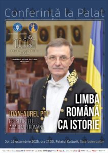 Evenimentele dedicate Centenarului Palatului Culturii din Iași (1925 – 2025) continuă cu o nouă „Conferință la Palat”: „Limba română ca istorie”, susținută de Acad. Ioan – Aurel Pop, președintele Academiei Române.
