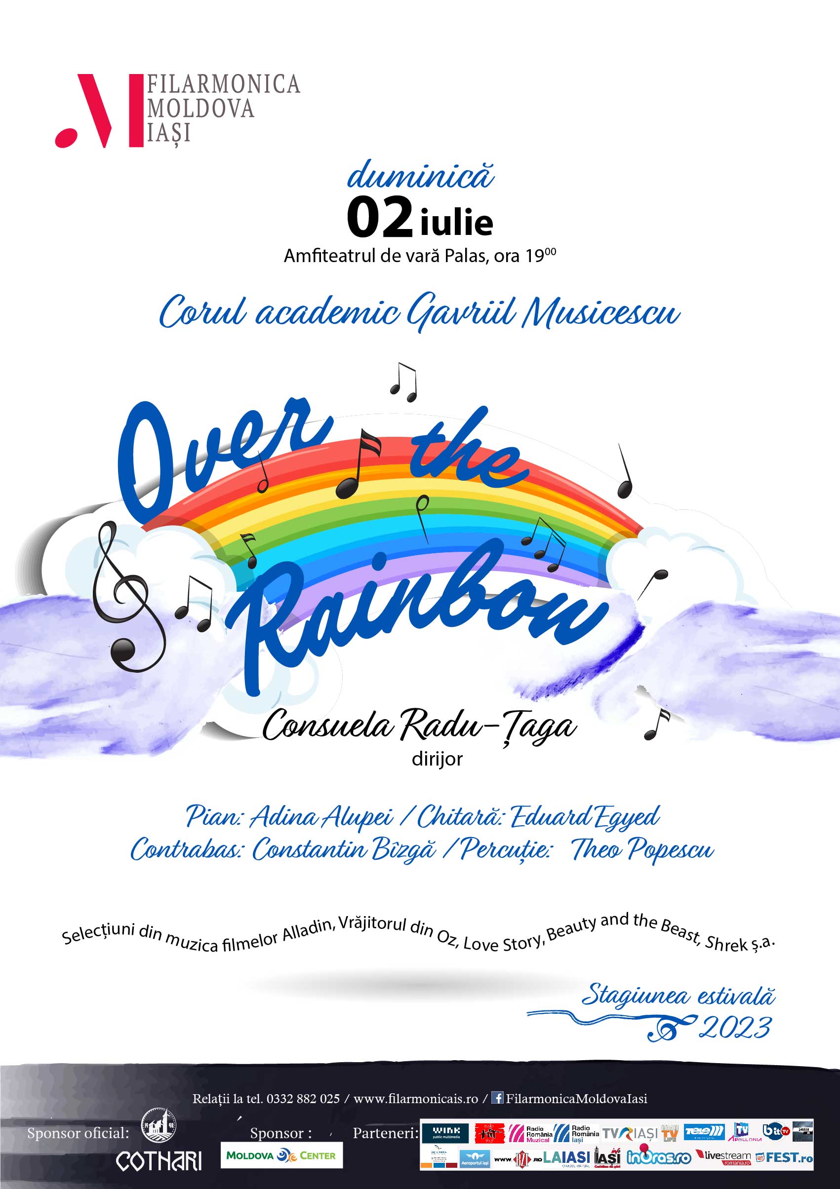 Stagiunea Estivală va continua DUMINICĂ, 02 iulie 2023, ora 19:00 la AMFITEATRUL PALAS – Teatrul de vară, cu un concert coral de excepție OVER THE RAINBOW în interpretarea Corului academic „Gavriil Musicescu” al Filarmonicii “Moldova” Iași.