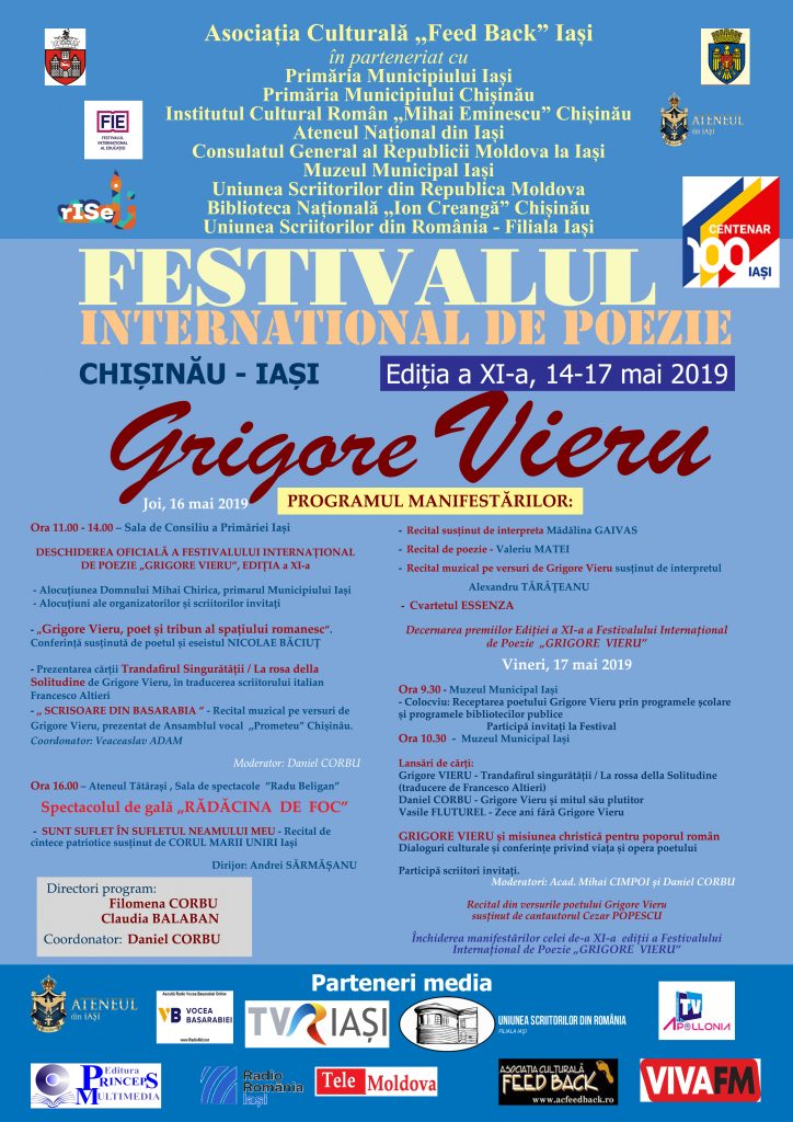 Astăzi, la Iaşi, începe Festivalul Internațional de Poezie „Grigore Vieru”.