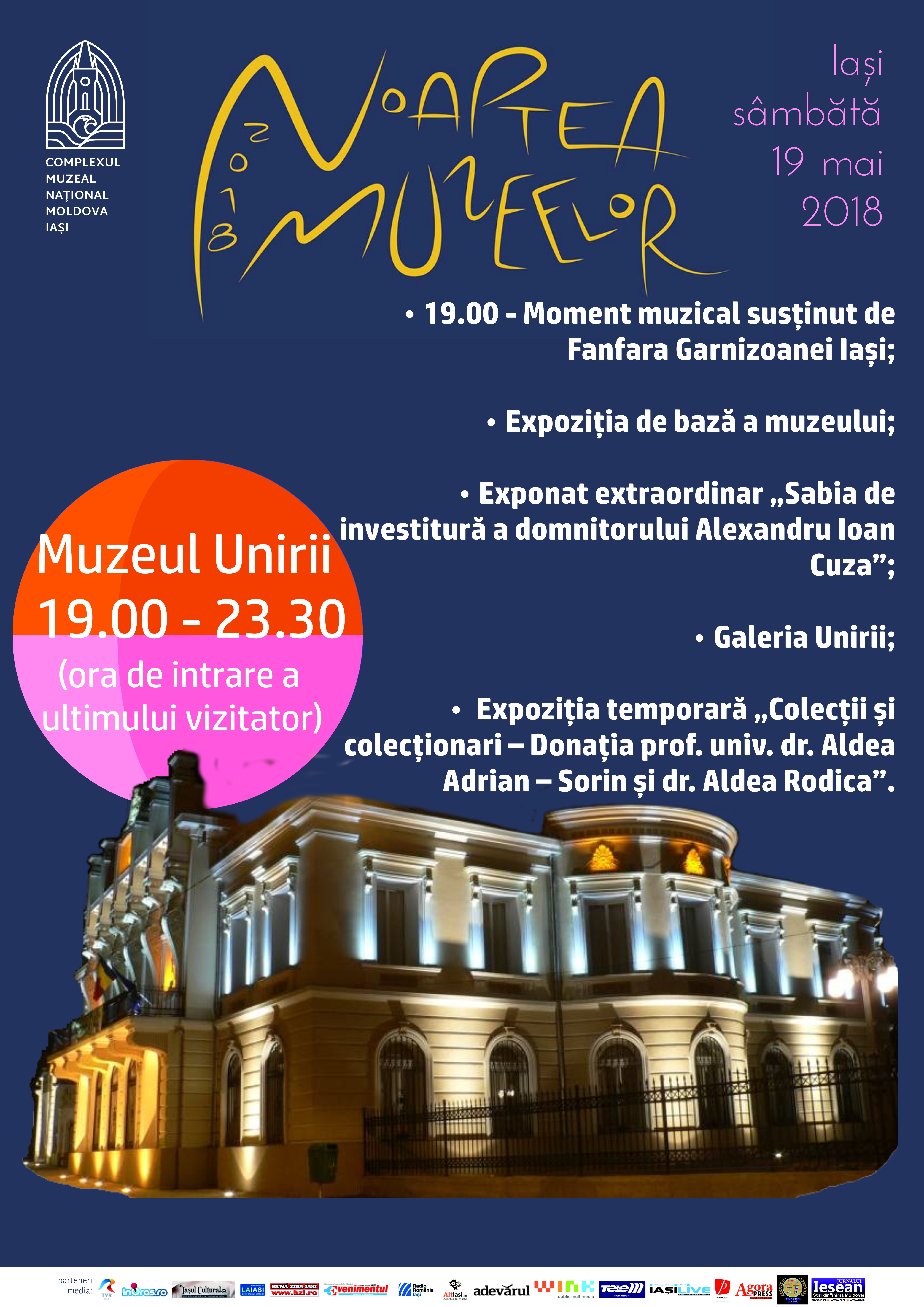 Complexul Muzeal Naţional „Moldova” Iaşi își deschide porţile sâmbătă, 19 mai 2018, invitând publicul să viziteze, gratuit, următoarele obiective muzeale: