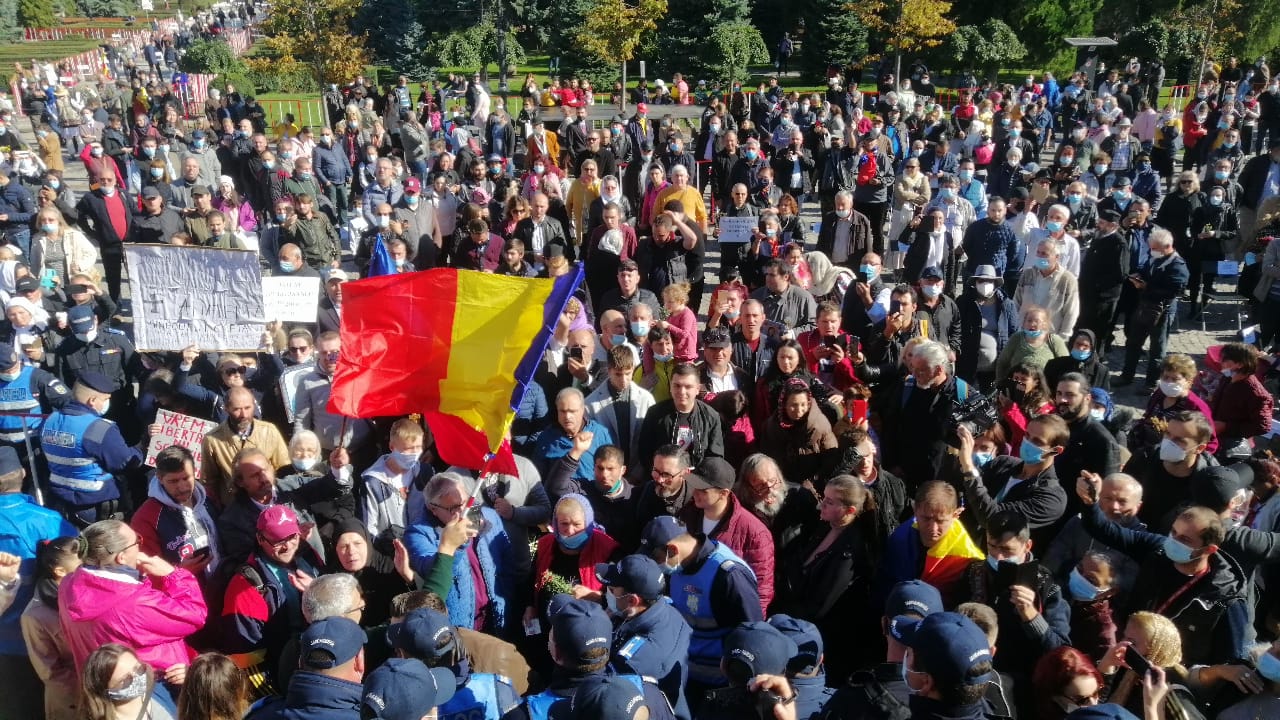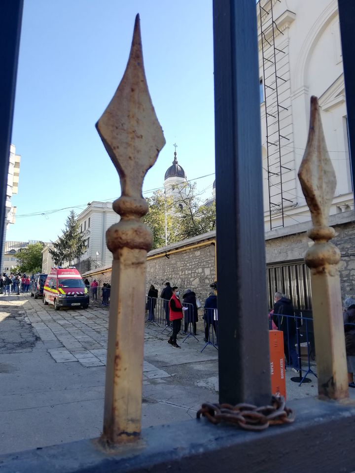 UPDATE, ora 10:00 – Aproximativ 100 de persoane au forțat, în această dimineață, intrarea în curtea Mitropoliei, nerespectând regulile de distanțare socială și nepurtând masca de protecție.