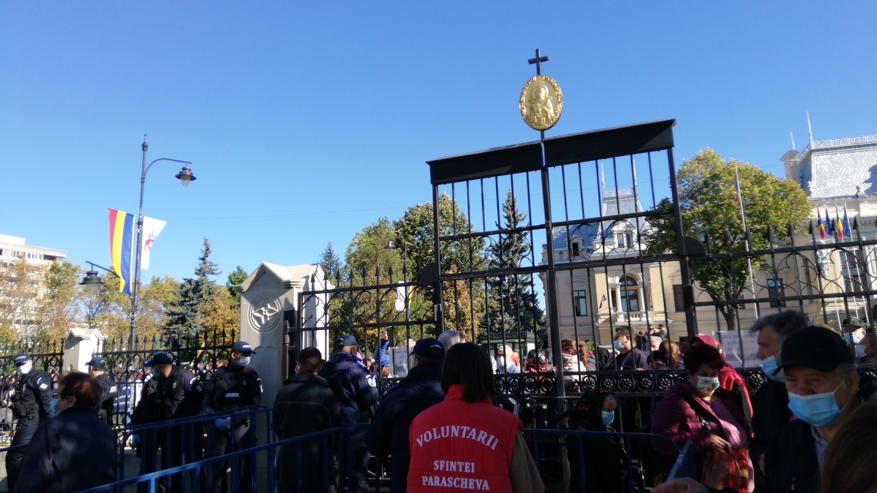 Ziua de 14 octombrie nu a fost lipsită de incidente. După slujba liturgică, pelerini veniţi din alte oraşe sau zone ale ţării au forţat porţile de acces în curtea mitropolitană şi cordonul de jandarmi, pentru a se închina la racla Sfintei Cuvioase Parascheva. Forţele de intervenţie s-au retras, la raclă ajungând şi persoanele venite din afara Iaşiului. Astfel au fost ignorate măsurile Consiliului Naţional pentru Situaţii de Urgenţă prin care se stipulează ca participarea credincioşilor la sărbătorile religioase să fie permisă doar celor care au domiciliul în localitatea respectivă.