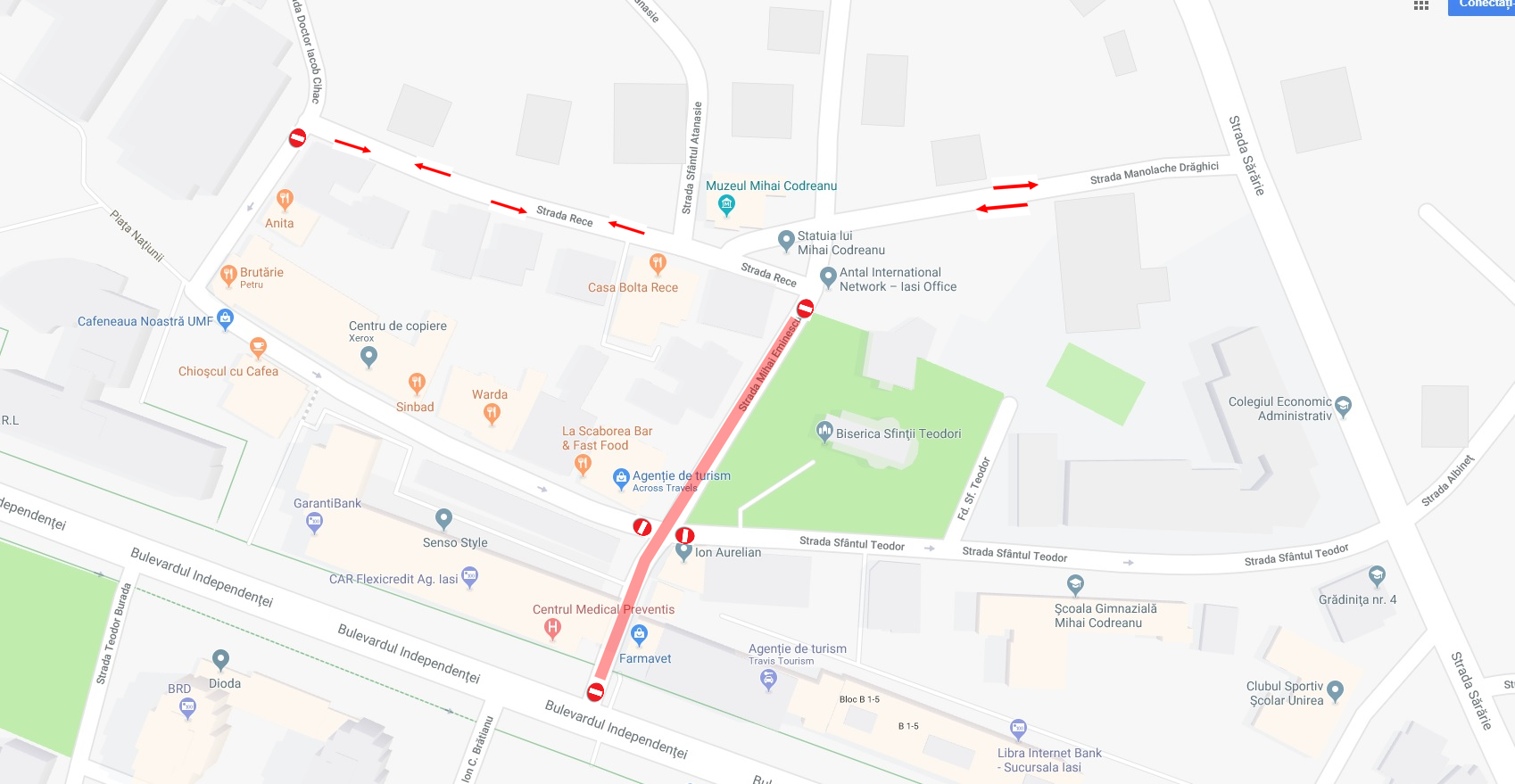 În perioadele menționate traficul rutier pe aceste străzi va fi oprit, iar autovehiculele vor putea circula pe rutele marcate în schițele atașate.