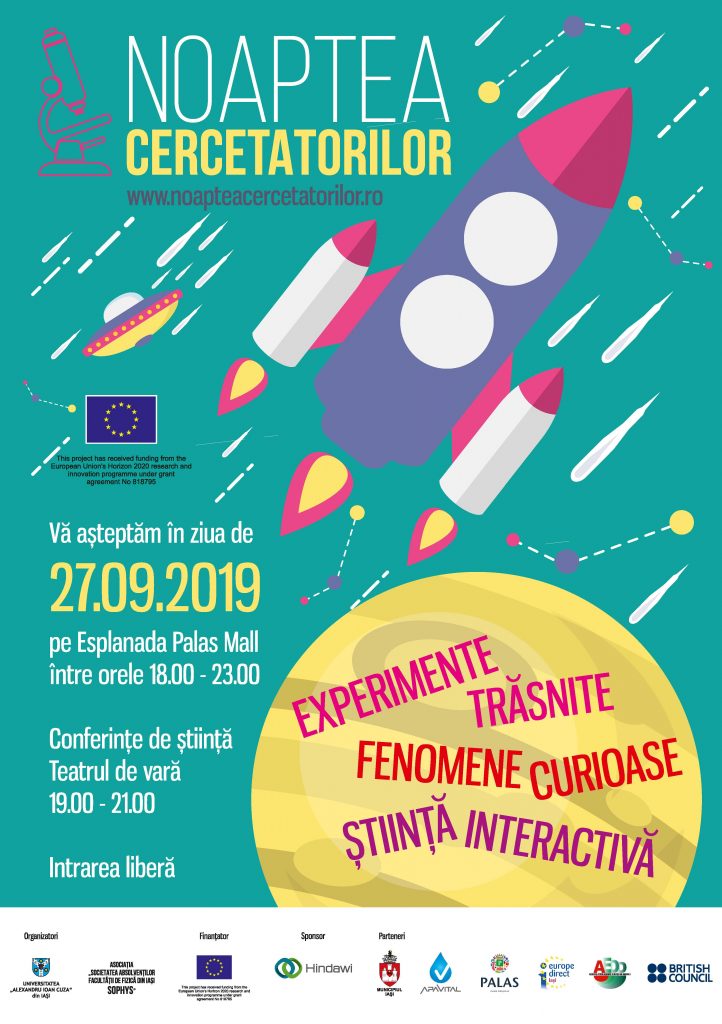 Evenimentul Noaptea cercetătorilor de la Iași este organizat de Universitatea „Alexandru Ioan Cuza” din Iași, cu sprijinul Hindawi, în parteneriat cu Primăria Municipiului Iași, Apa Vital, Palas, Europe Direct Iași și British Council.