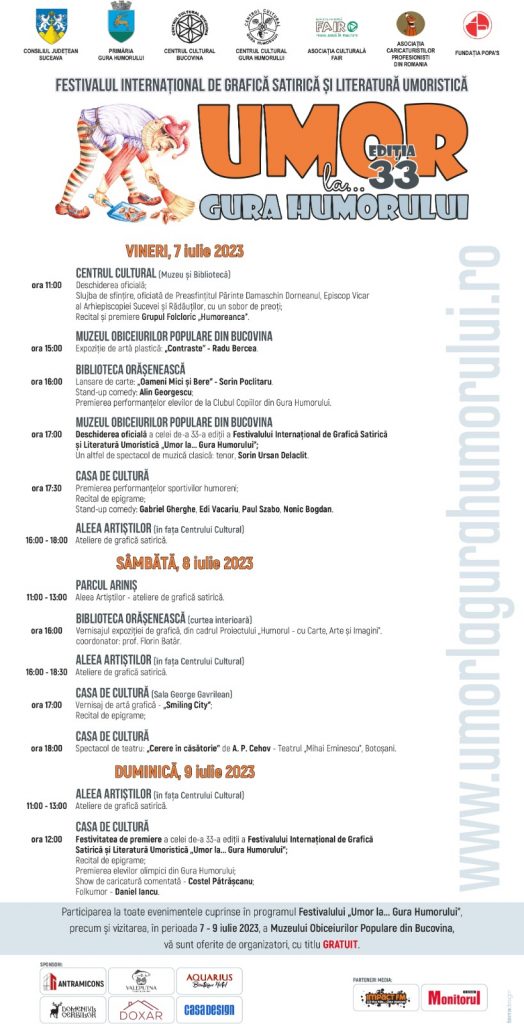 Începe Festivalul Internațional de Grafică Satirică și Literatură Umoristică „Umor la… Gura Humorului” (7-9 iulie).