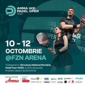 În perioada 10-12 octombrie, baza sportivă FZN ARENA se pregătește să găzduiască peste 100 de meciuri în cele trei zile ale turneului internațional Amma Iași Padel Open. Până în prezent, la cele 7 categorii (M1/ M2/ M3/ M4/ Mixt/ Feminin și U12) s-au înscris 93 de sportivi. Deschiderea turneului este programată vineri, 10 octombrie, ora 17.