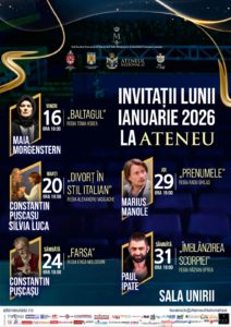 „Deschidem anul 2026 cu o agendă densă, în care am invitat unii dintre cei mai apreciați actori ai momentului. Prezența unor artiști ca Maia Morgenstern, Paul Ipate sau Marius Manole la Ateneul Național din Iași este o garanție a calității și o invitație deschisă la reflecție și divertisment de bun gust. Vă așteptăm la Sala Unirii pentru o lună ianuarie cu adevărat specială”, a declarat managerul interimar a Ateneului Național din Iași – Mihai G. Marius-Andrei.