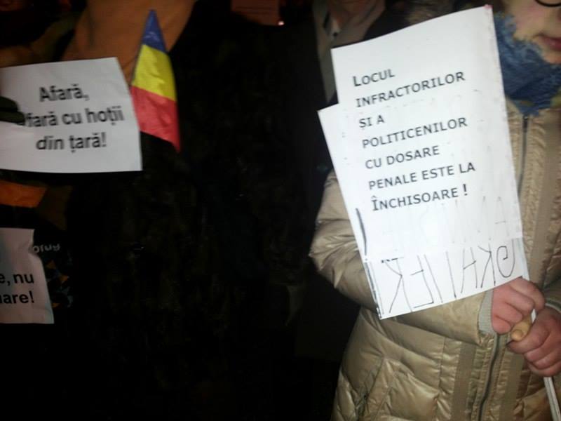 „Spumem NU grațierii”, „Hoția distruge România!”, „Corupții la pușcărie!”, „Hoții la închisoare, nu la guvernare”, sunt doar câteva dintre mesajele afișate pe pancartele din Piața Unirii.