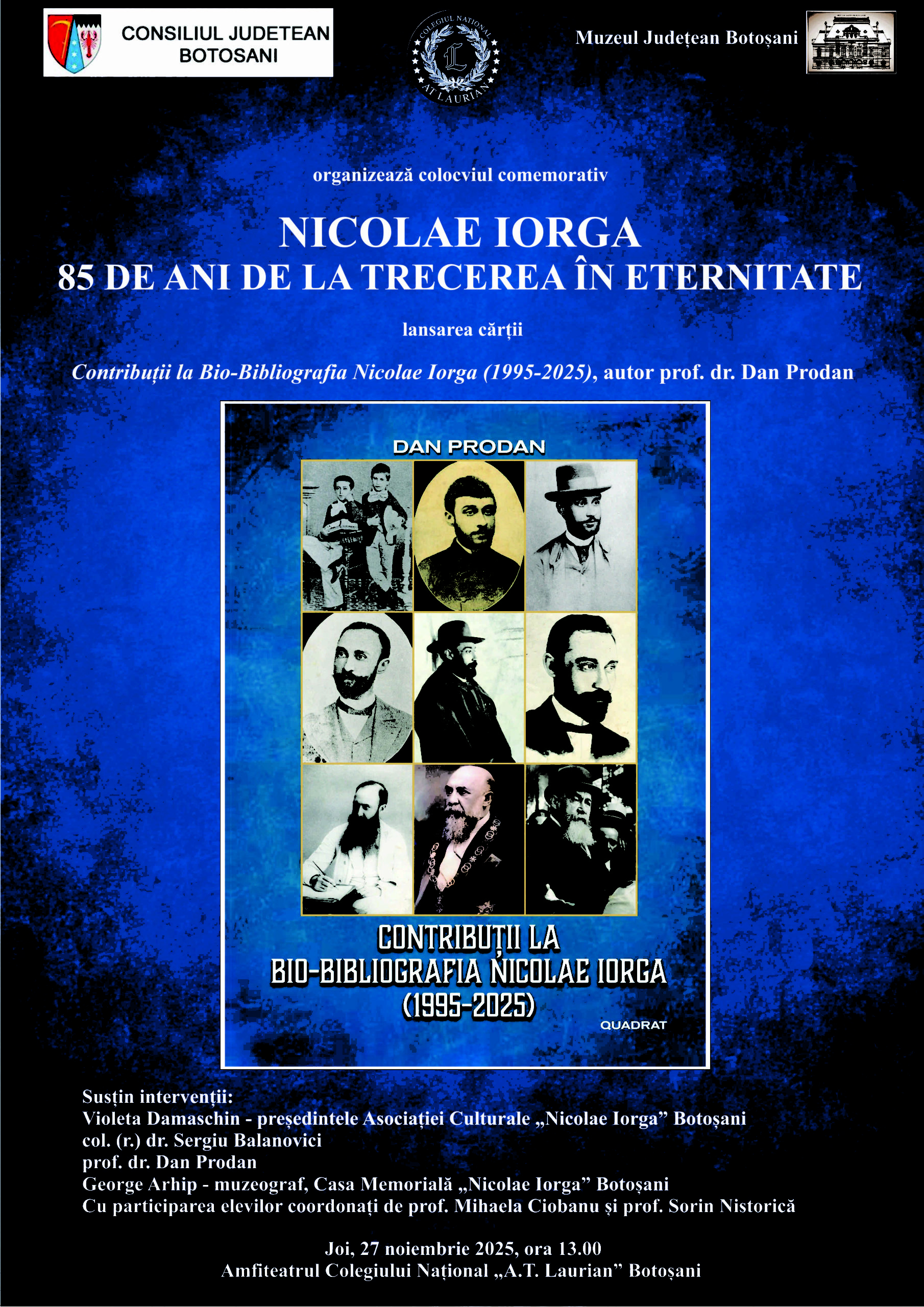 În cadrul evenimentului va avea loc lansarea cărții Contribuții la Bio-Bibliografia Nicolae Iorga (1995-2025), autor prof. dr. Dan Prodan.