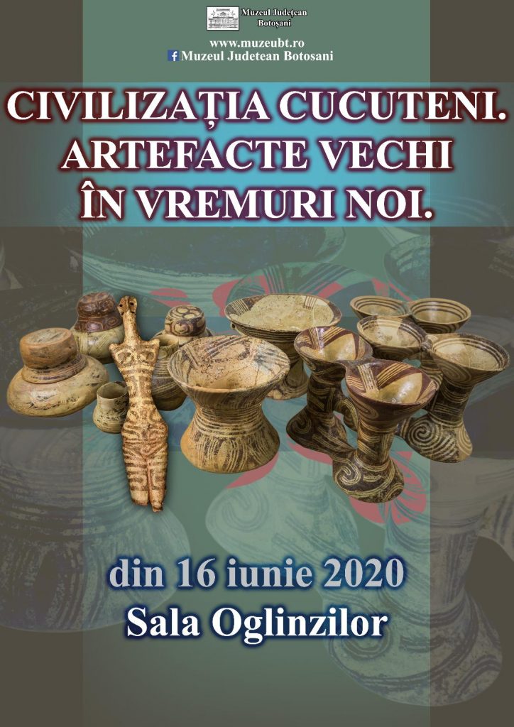 Pentru vizitatorii Muzeului de Istorie Botoșani am pregătit o surpriză – noua expoziție temporară – „Cicilizația Cucuteni. Artefacte vechi în vremuri noi” – ce readuce în fața vizitatorului fascinanta civilizaţie Cucuteni prin intermediul artefactelor ceramice. Expoziţia vă prezintă vase şi statuete foarte valoroase, cu o vechime de peste 6000 de ani, multe dintre ele în premieră. Vă așteptăm în Sala Oglinzilor pentru a descoperi pictura şi sculptura maeştrilor cucutenieni, cu artefacte descoperite pe teritoriul judeţului Botoşani!