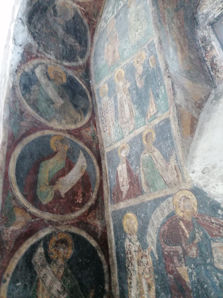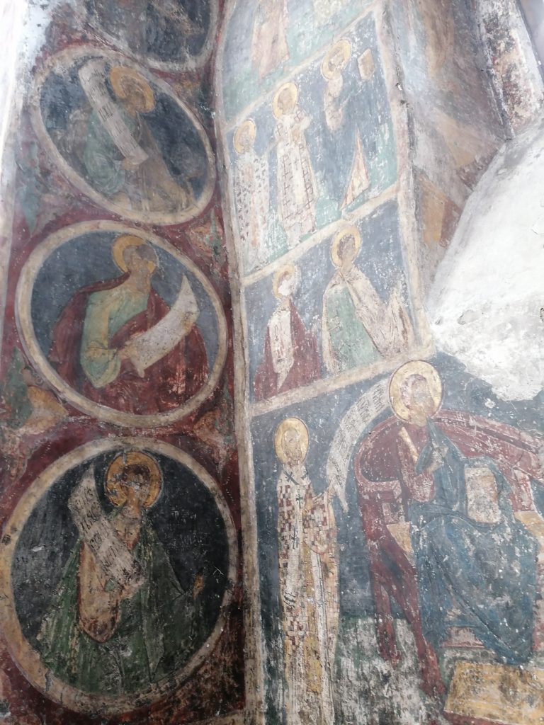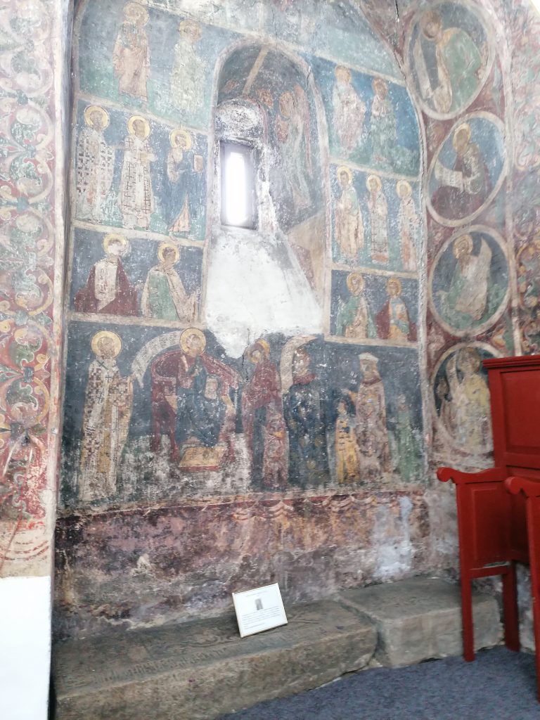 În partea sudică a pronaosului se află o nișă pictată unde au fost înmormântați hatmanul Șendrea, tatăl și poate bunicul sau un fiu al său.