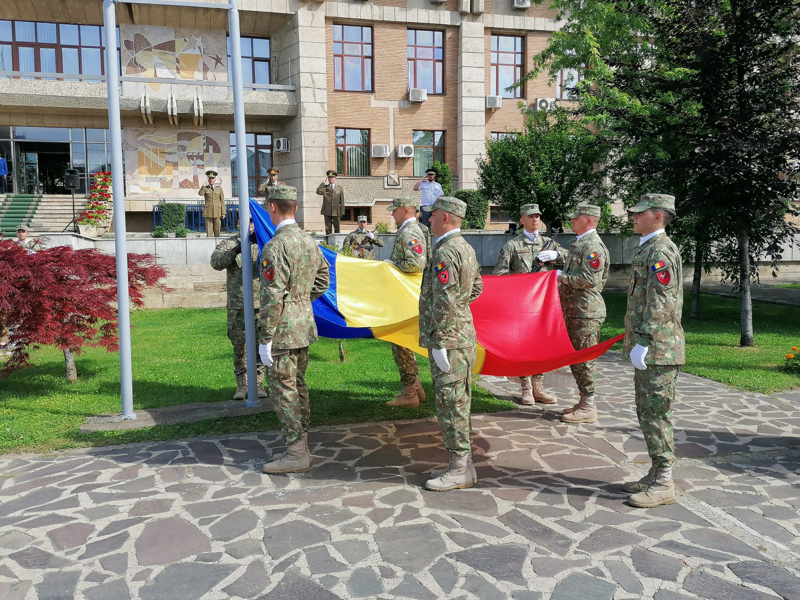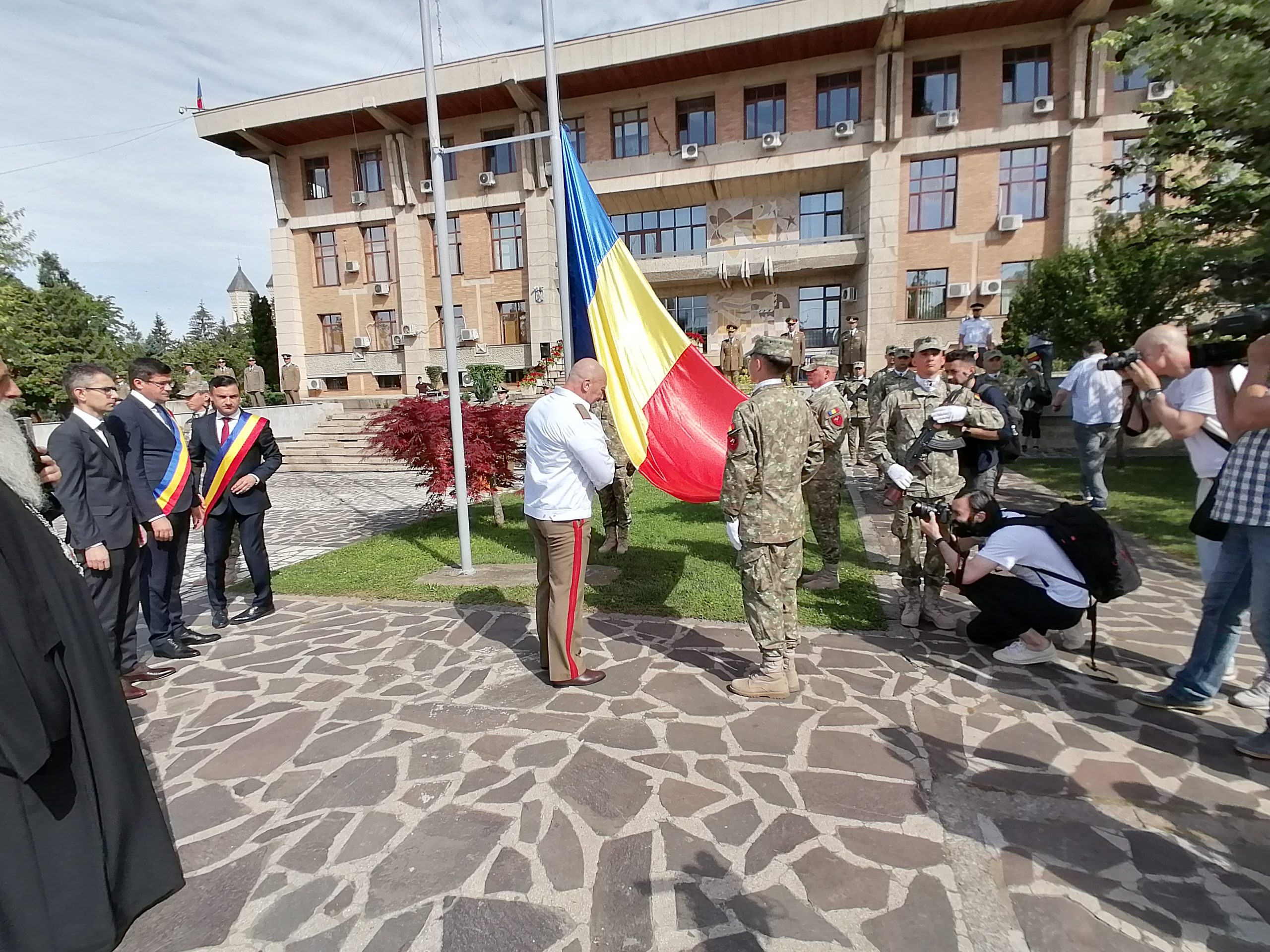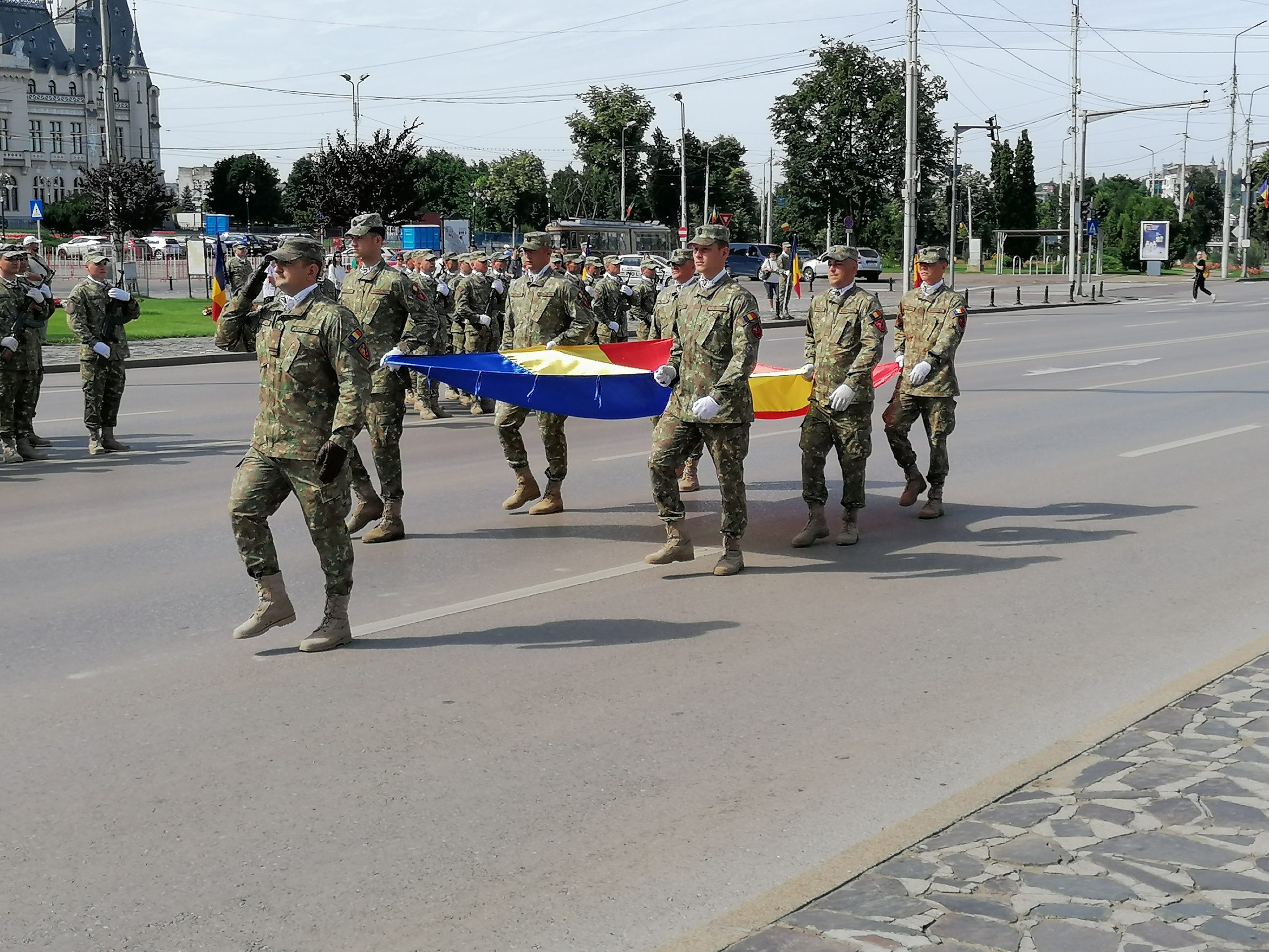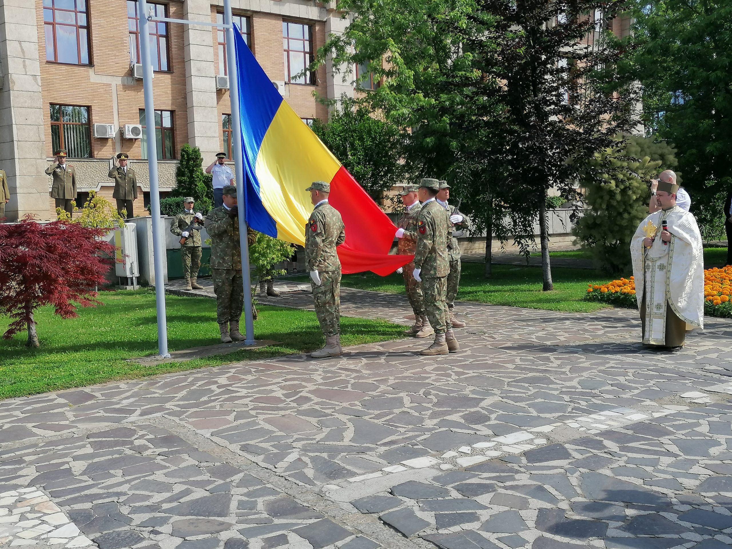Ceremonialul militar şi religios s-a desfăşurat în faţa clădirii în care funcţionează Instituţia Prefectului. La eveniment au fost prezenţi, printre alţii, reprezentanţi ai autorităţilor locale şi judeţului, prefectul judeţului, comandantul Garnizoanei Iaşi, mitropolitul Teofan al Moldovei şi Bucovinei.