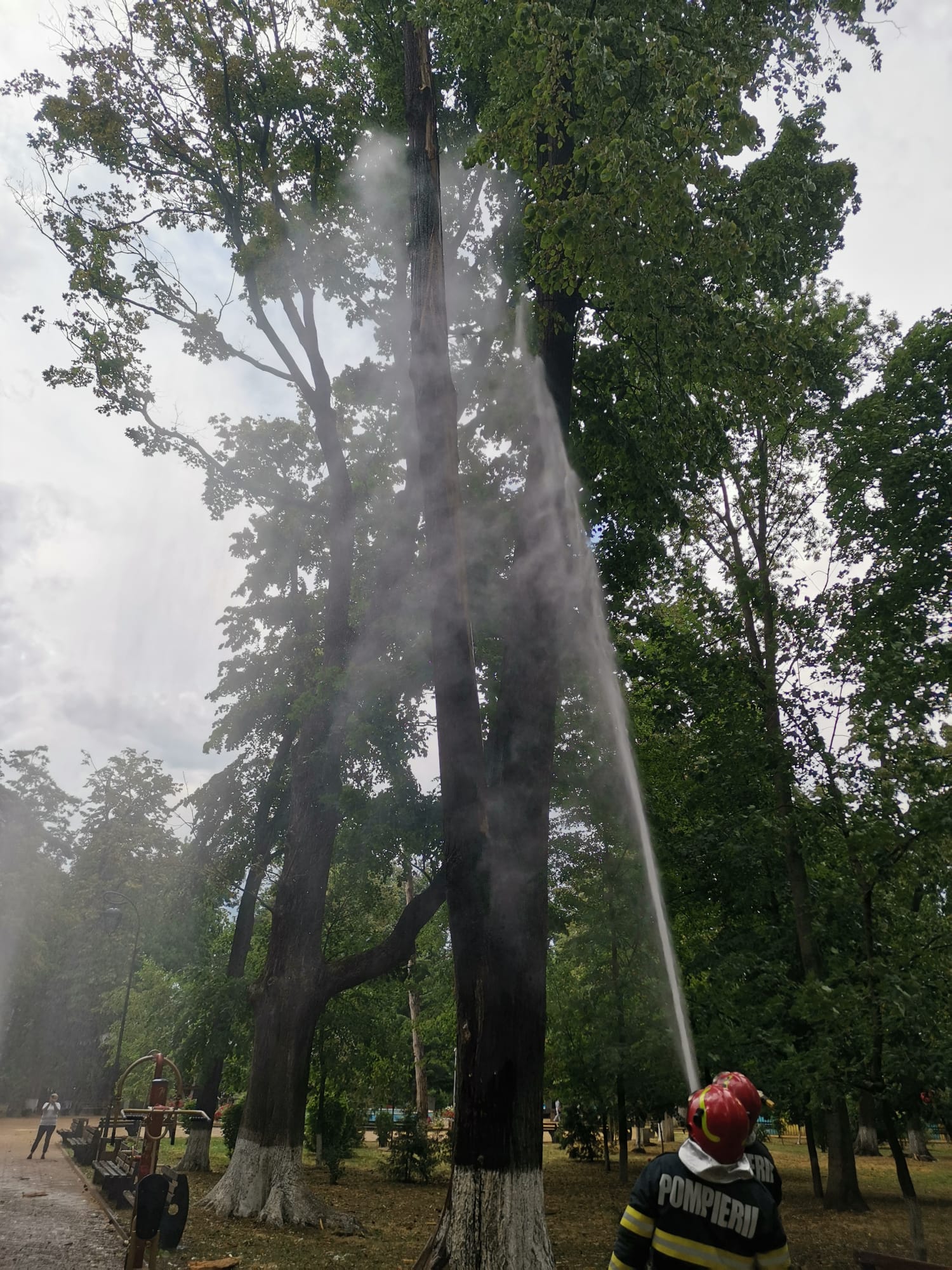Botoşani – Ploile însoțite de vânt din ultimele ore au produs pagube în mai multe localități din județul Botoșani. În urmă cu puțin timp, pompierii au intervenit în parcul Mihai Eminescu din municipiul Botoșani, acolo unde creanga unui copac a luat foc de la un trăsnet.