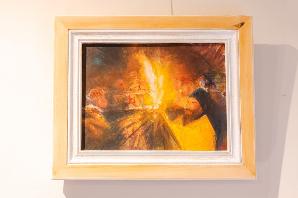 O altă lucrare remarcabilă pe care o putem admira în expoziţia „Lumina pascală în imaginarul voiculescian”, aparține artistei Emilia Avărvăroaiei. Lucrarea reprezintă o broderie și se află încă în lucru. În cadrul expoziției de față constituie o poartă, pentru fiecare dintre noi, înspre apropierea de lumina Învierii. Interlocutorul nostru, pentru fiecare dintre dumneavoastră, are o invitație ca până la 11 mai a.c. să vizitați expoziția de față.