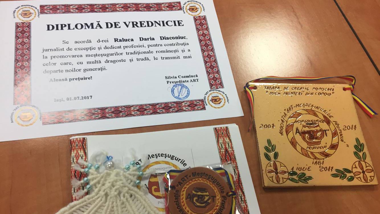 Raluca este singurul jurnalist din Iași care a primit această distincție ca urma a zecilor de materiale realizate despre meșterii populari din județele Moldovei.