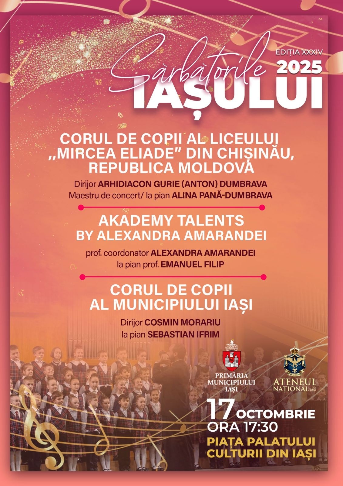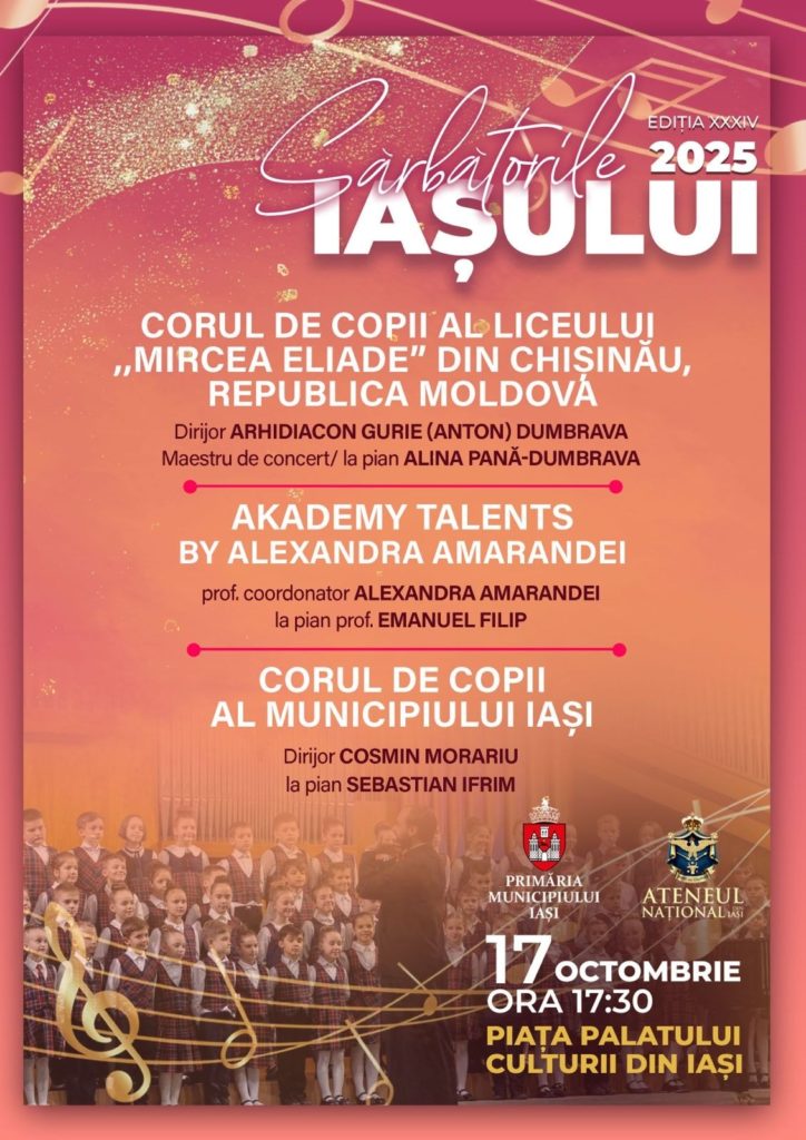Vineri, 17 octombrie, de la ora 17:30, vă invităm în Piața Palatului Culturii la un mega concert dedicat Sărbătorilor Iașului 2025.