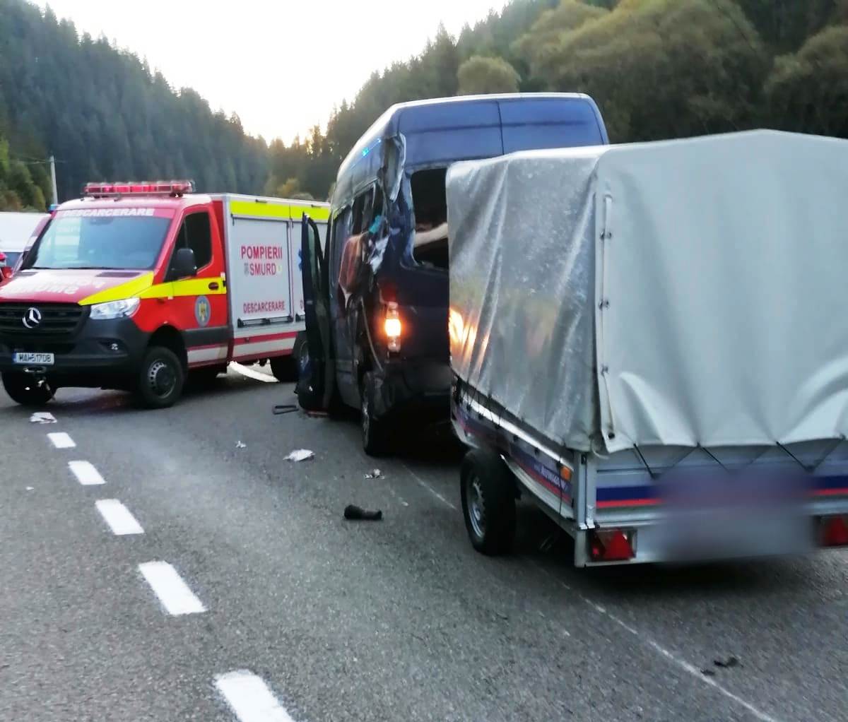 Potrivit ISU Suceava, accidentul s-a produs din cauza coliziunii unui microbuz cu un autotren.