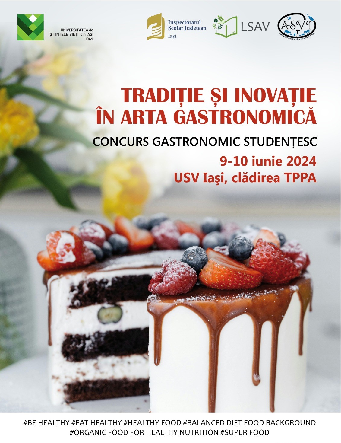 Carot cake, lime pavlova, chipsuri de mămăligă cu sos birria, cozonac red și prăjitura fantezie, frigărui de creveți cu sos de guacamole, muchi de vită cu sos de trufe și tartă de fructe cu trandafiri sunt câteva din produsele înscrise la Concursul Național Studențesc „TRADIŢIE ŞI INOVAŢIE ÎN ARTA GASTRONOMICĂ” organizat de Universitatea de Științele Vieții „Ion Ionescu de la Brad” din Iași (USV), în parteneriat cu Inspectoratul Școlar Județean Iași, Liga Studenților Agronomi și Veterinari și cu Asociația Studenților Veterinari din Iași.