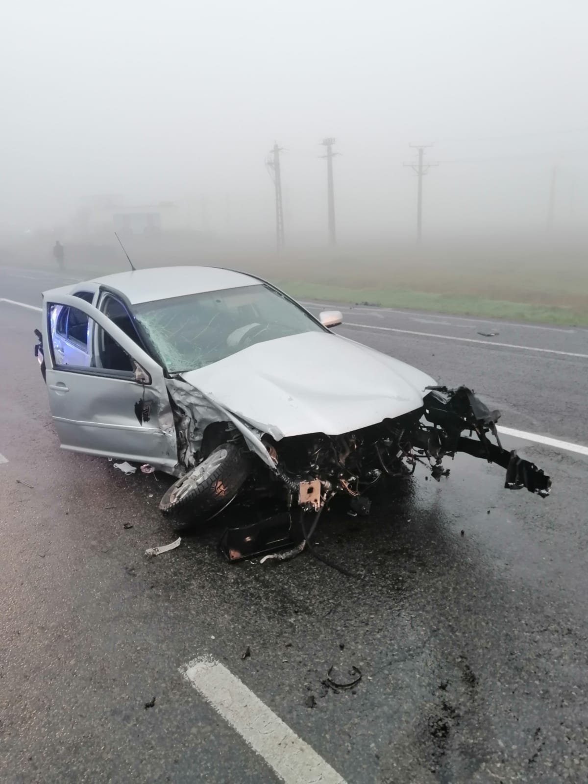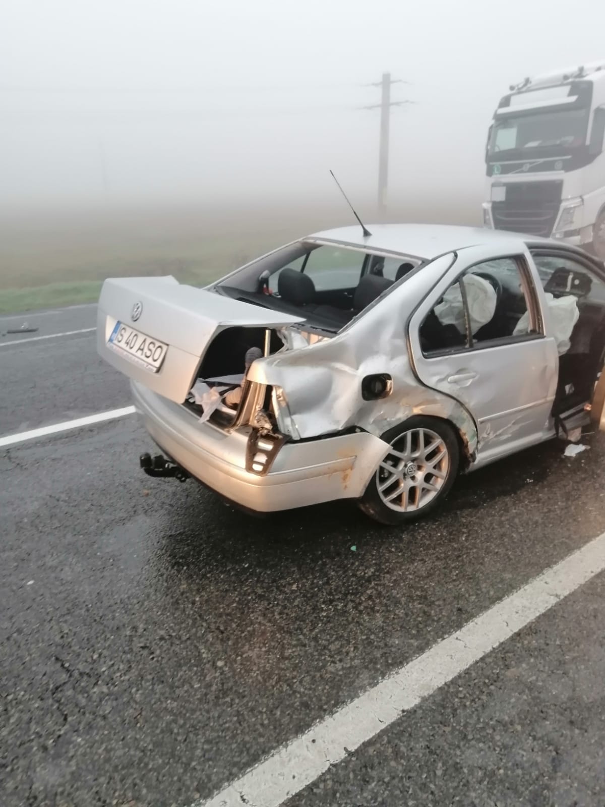 Din cauză că era ceață, șoferul nu a observat că se apropia o altă mașină din sens invers.