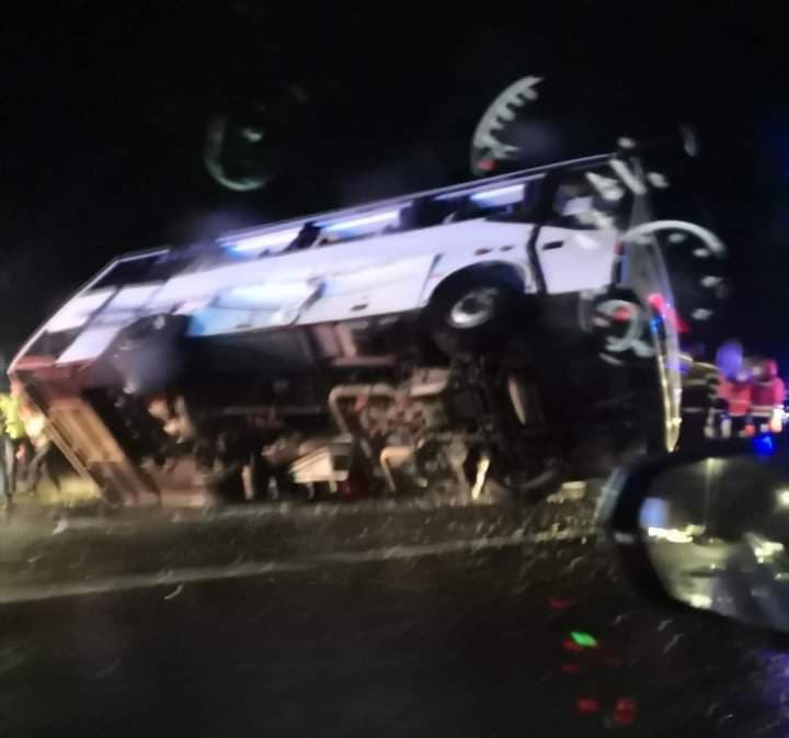 În această dimineață, in jurul orei 6, pe DN 28 (DE 583) Iași – Târgu Frumos, în zona localității Lețcani, s-a produs o coliziune între un autotren și un autobuz, acesta din urmă răsturnându-se peste un autoturism.