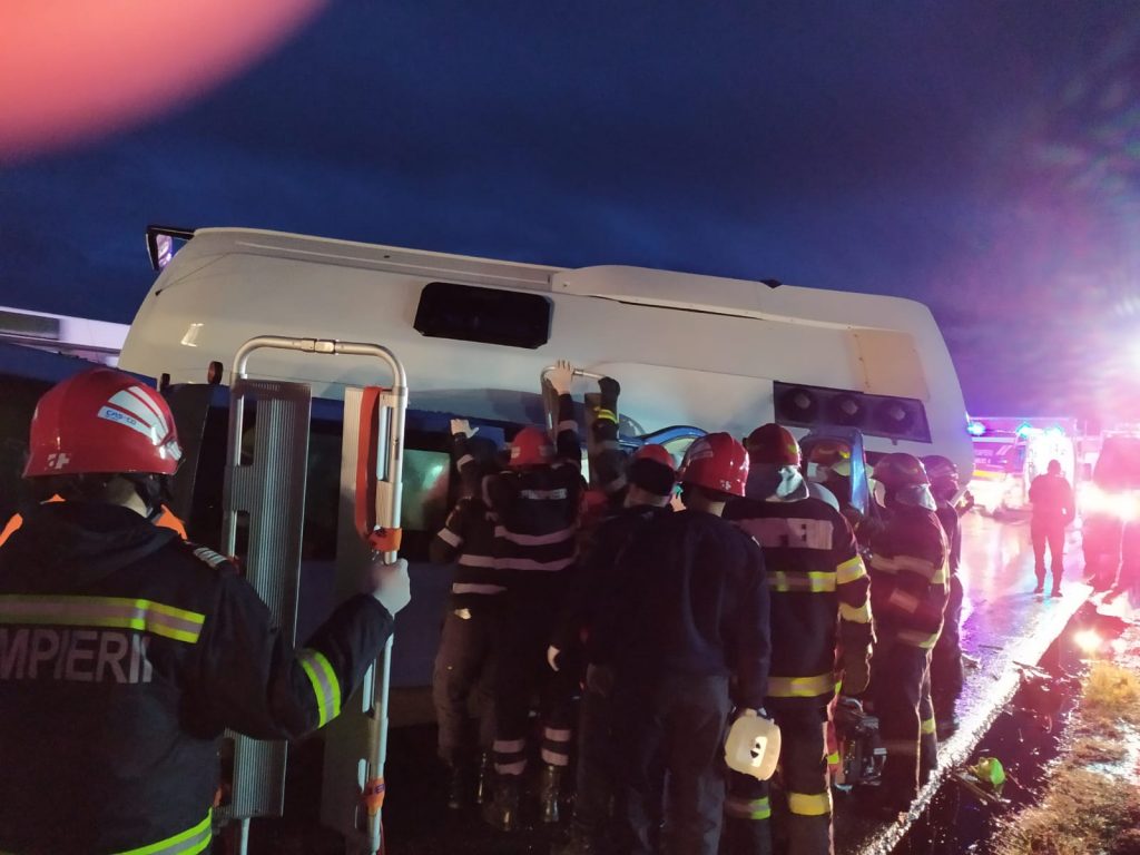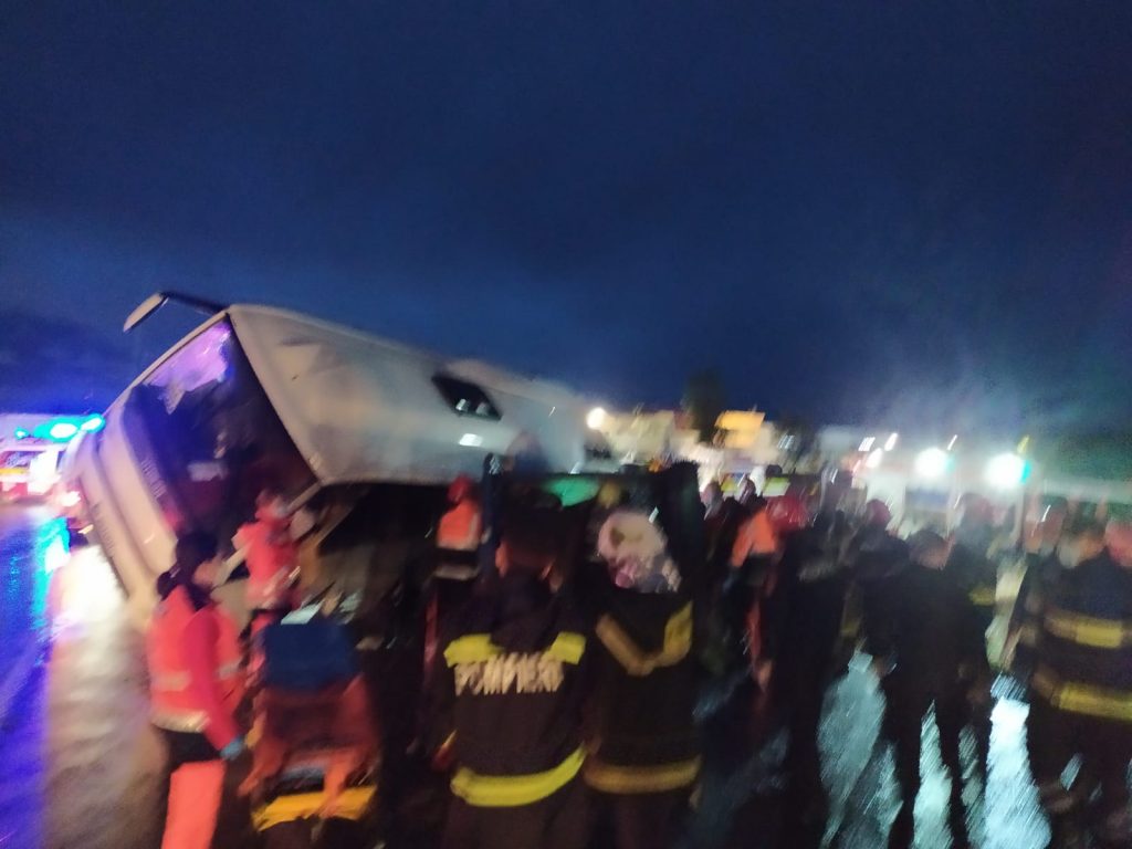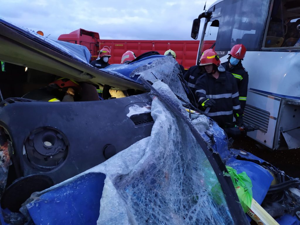 ”A fost activat planul roșu de intervenție în cadrul Inspectoratul pentru Situații de Urgență Iași. Accidentul rutier s-a produs între un tir, un autobuz de 30 de locuri și un microbuz cu 8 locuri. Au rezultat 13 victime. 6 victime au fost transportate la spital. În urma accidentului, 4 victime au fost descarcerate. Din nefericire, se pare că o victimă este decedată la locul intervenției. Din partea Inspectoratului pentu Situații de Urgență Iași au fost dispuse trei echipaje de prim autor, o ambulanță cu medic TIM, o descarcerare și o autospecială de stingere cu descarcerare. Din partea Serviciului Județean de Ambulanță Iași au fost redirecționate două ambulanțe, iar la locul intervenției sunt trei echipaje ale Poliției Rutiere.”