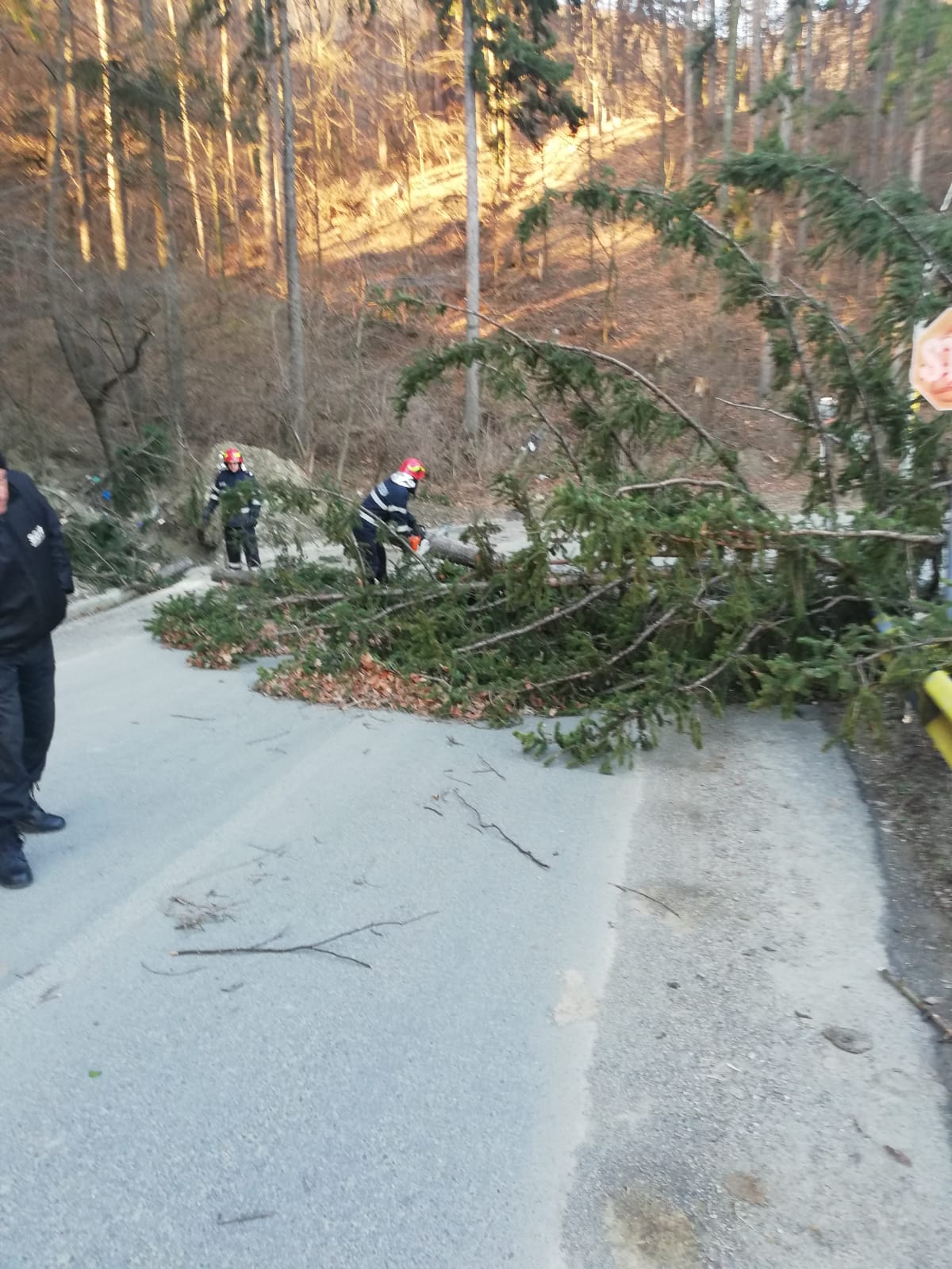 Pompierii militari intervin şi ei pentru degajarea unor arbori cazuţi pe carosabil în municipiul Piatra Neamţ.