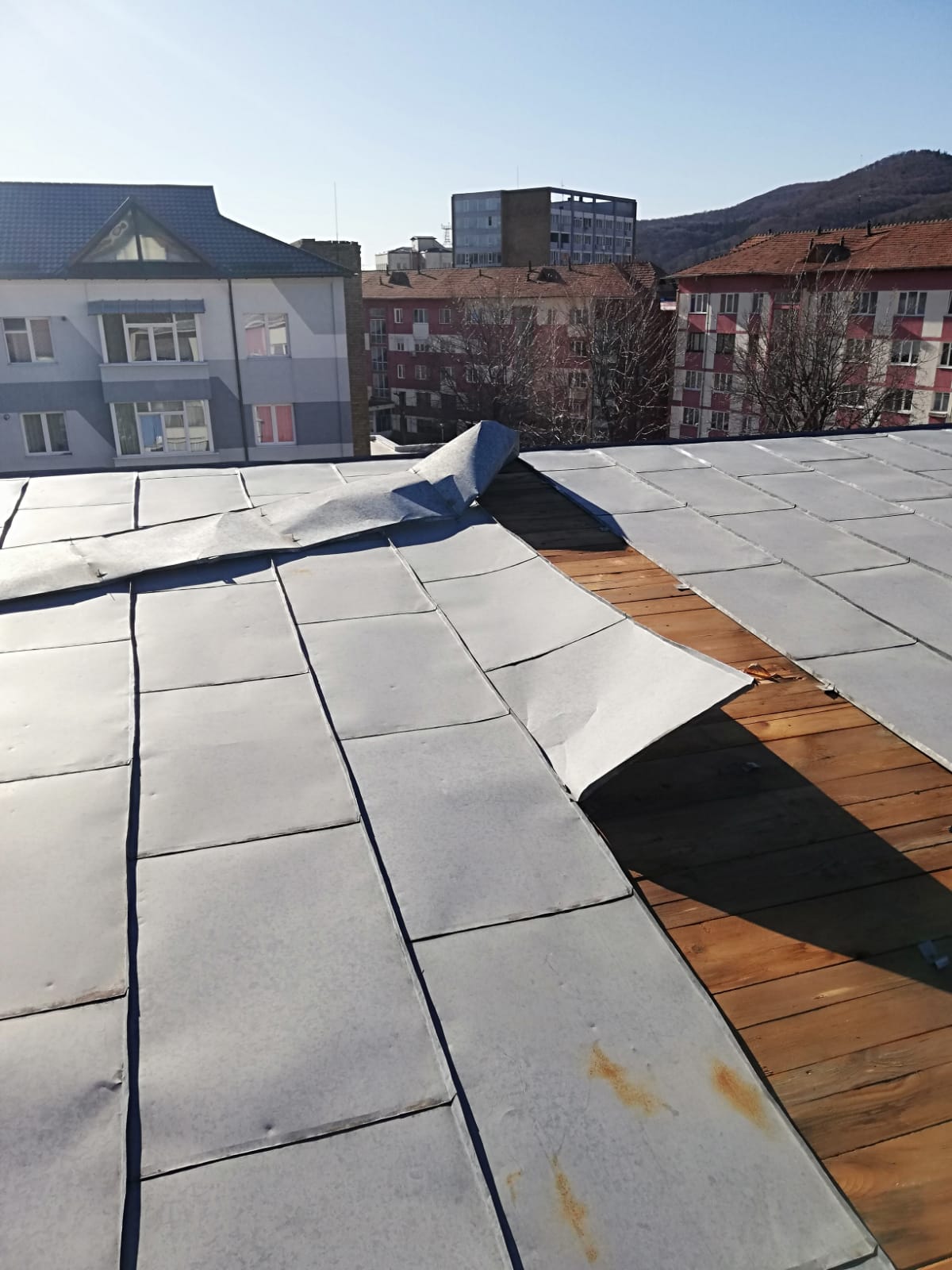 La ora 9.15, pompierii au fost solicitaţi să intervină pentru îndepărtarea unei bucăţi de tablă desprinsă din acoperişul unui bloc de locuinte şi căzută pe cablurile de telefonie în Piaţa 22 decembrie, Piatra Neamţ.
