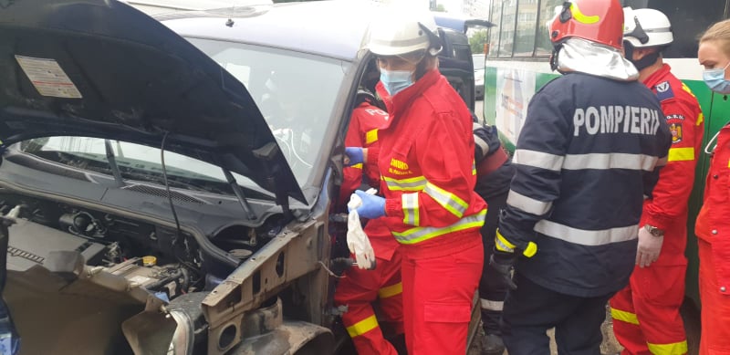 Potrivit reprezentanţilor ISU, una dintre persoanele care se aflau în maşină s-au autoevacuat, însă şoferul, un bărbat în vârstă de 55 de ani, a rămas blocat în autoturism.