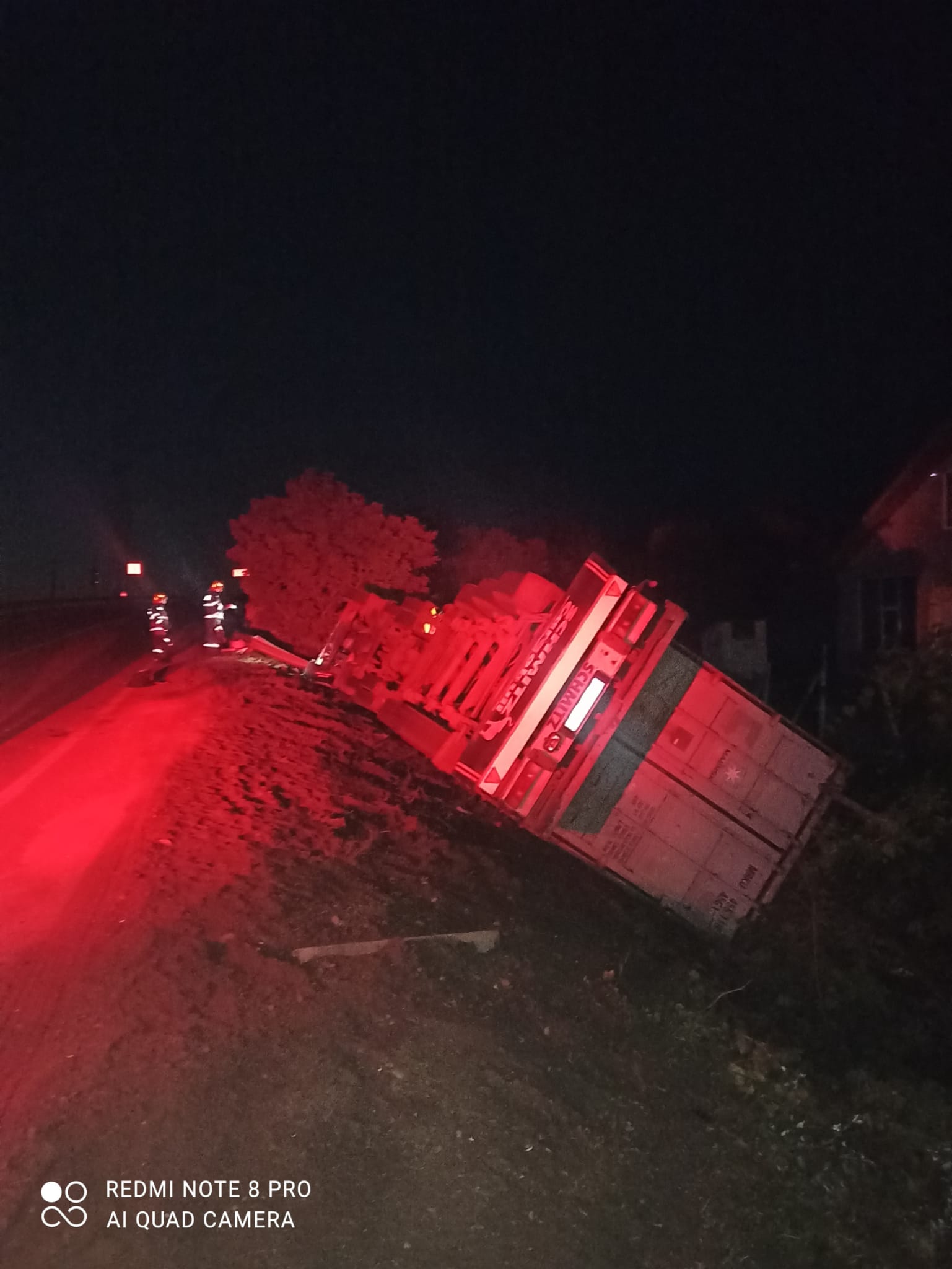 ”În accident a fost implicat un ansamblu care transporta lemne. La sosirea echipajelor de intervenţie a fost găsit un autocamion răsturnat în afara carosabilului, pe jumătate în rigole. Din autovehiculul de mare tonaj se scurgeau lichide combustibile. Până la sosirea echipajelor de intervenţie, conducătorul auto s-a autoevacuat. Şoferul ucrainean a fost evaluat, a primit primul ajutor, dar a refuzat transportul la spital. La cererea conducătorului auto, acesta a fost transportat în Tabăra mobilă de refugiaţi Huşi. Pompierii militari au scos bornele bateriilor, au oprit scurgerile de combustibil, au curăţat carosabilul şi au asigurat zona’, a precizat purtătorul de cuvânt al ISU Vaslui.