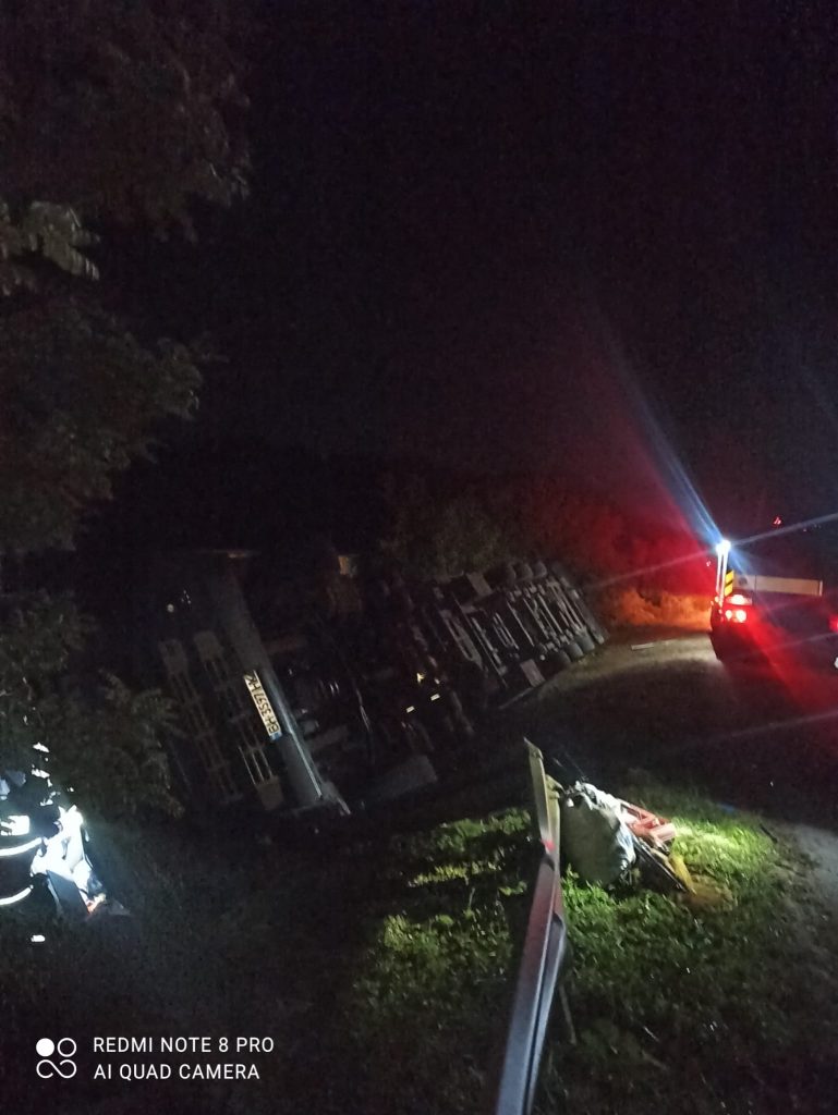 Vaslui: Un şofer ucrainean s-a răsturnat cu TIR-ul la intrarea în Huşi, dinspre Albiţa
