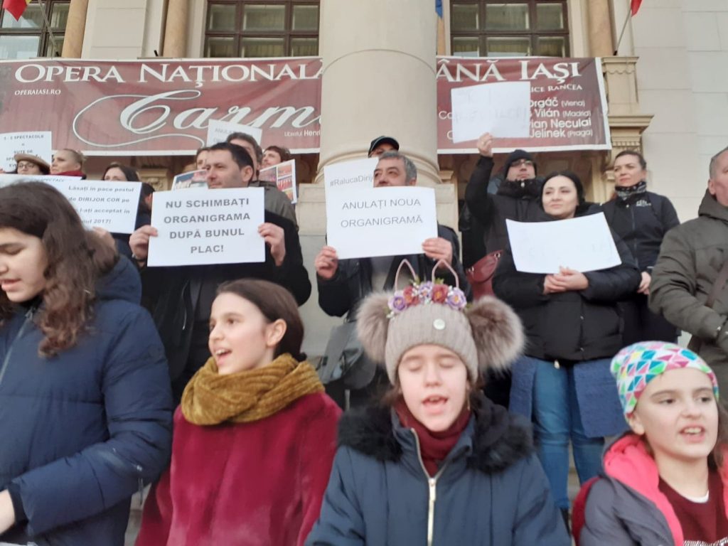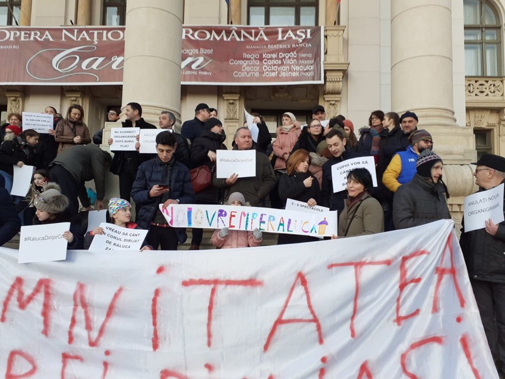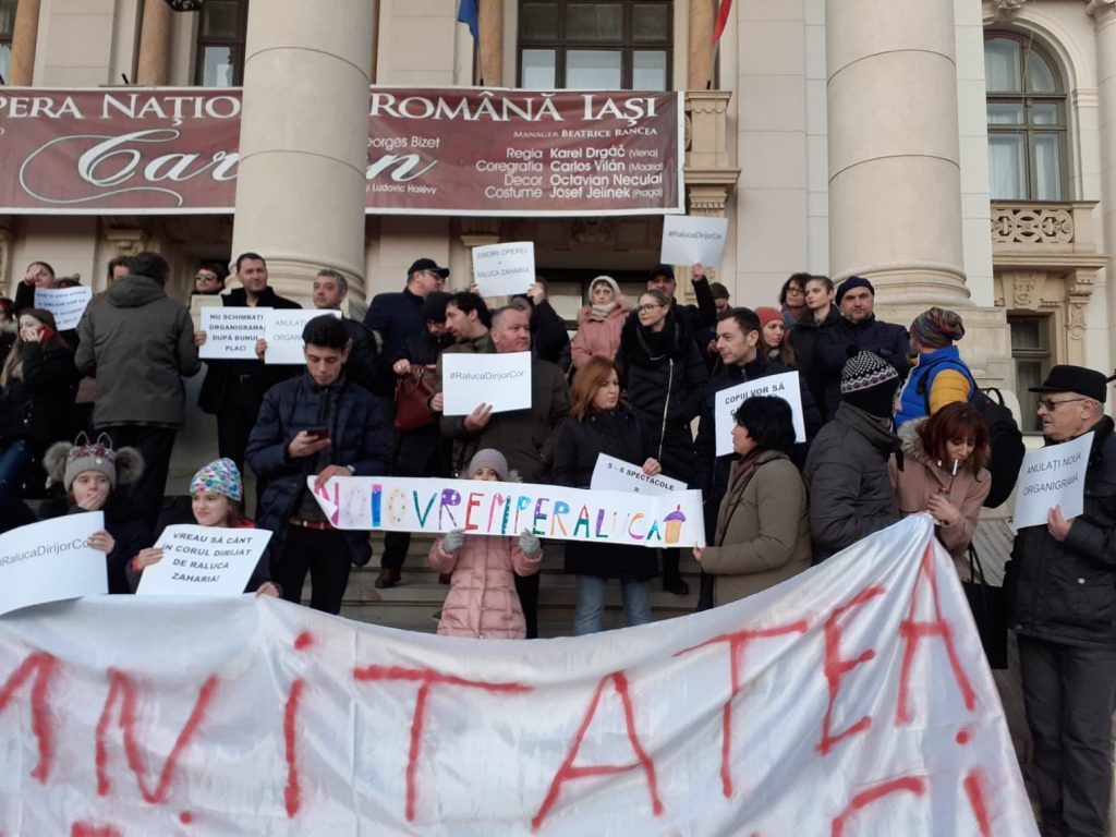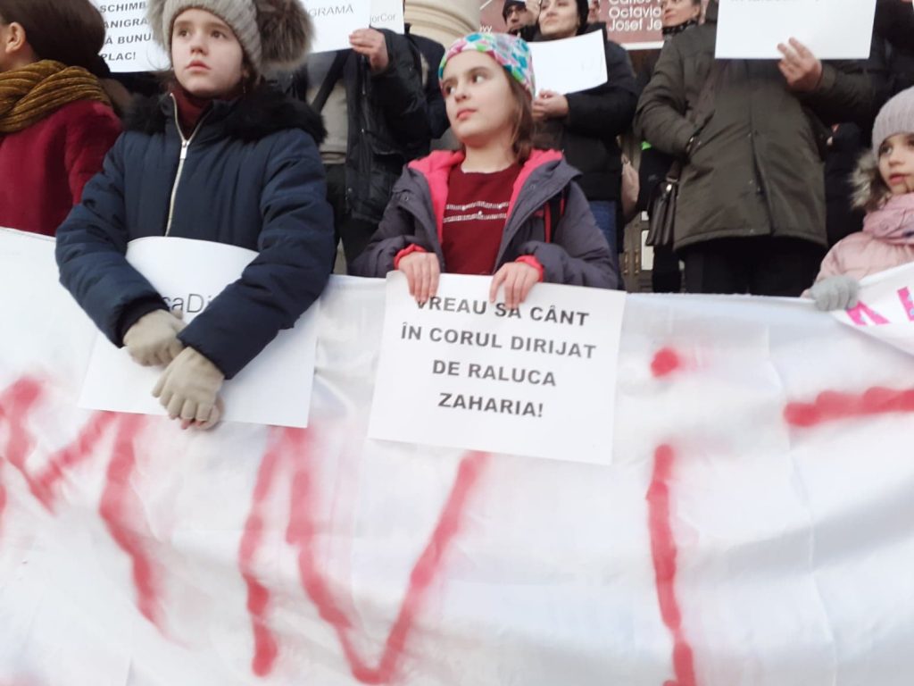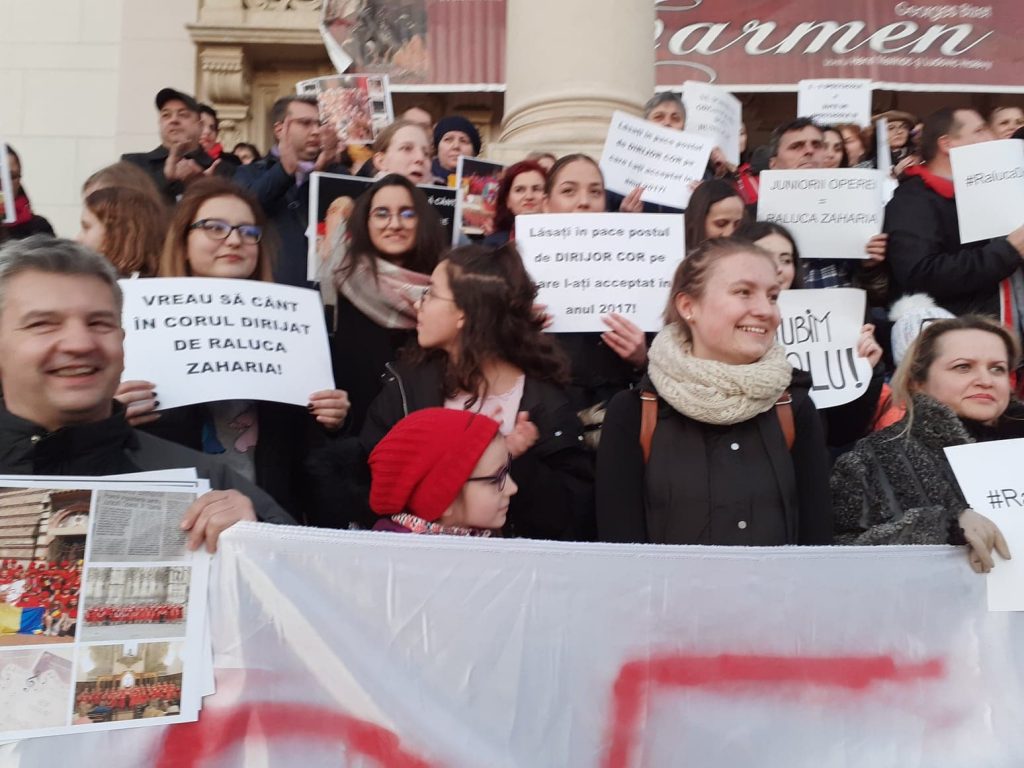 Copiii din corul Juniorii Operei şi părinţii acestora au protestat, a doua oară săptămâna aceasta, împotriva deciziei conducerii instituţiei de a desfiinţa postul de dirijor cor pe care îl ocupa Raluca Zaharia.