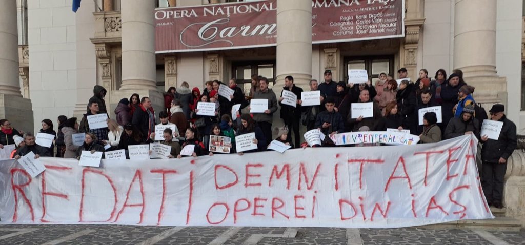 (VIDEO/AUDIO) Un nou protest în faţa Operei Naţionale din Iaşi