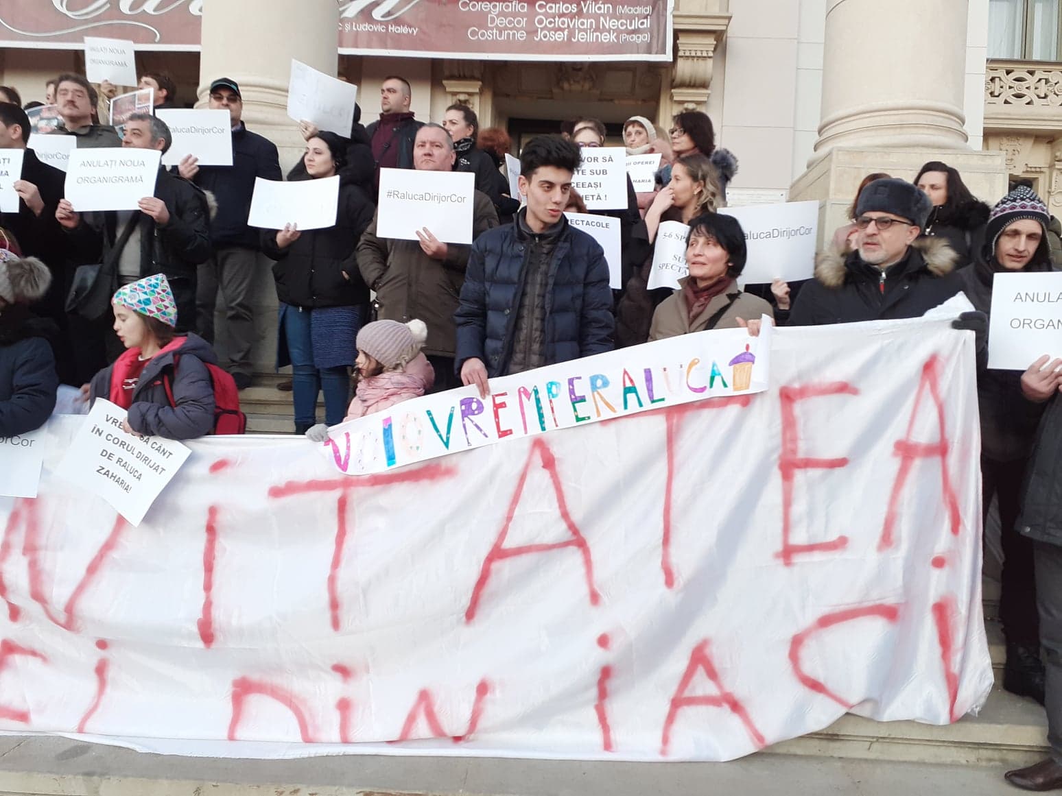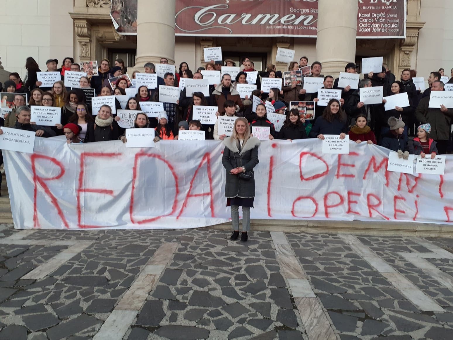 Copiii din corul Juniorii Operei şi părinţii acestora au protestat, a doua oară săptămâna aceasta, împotriva deciziei conducerii instituţiei de a desfiinţa postul de dirijor cor pe care îl ocupa Raluca Zaharia.