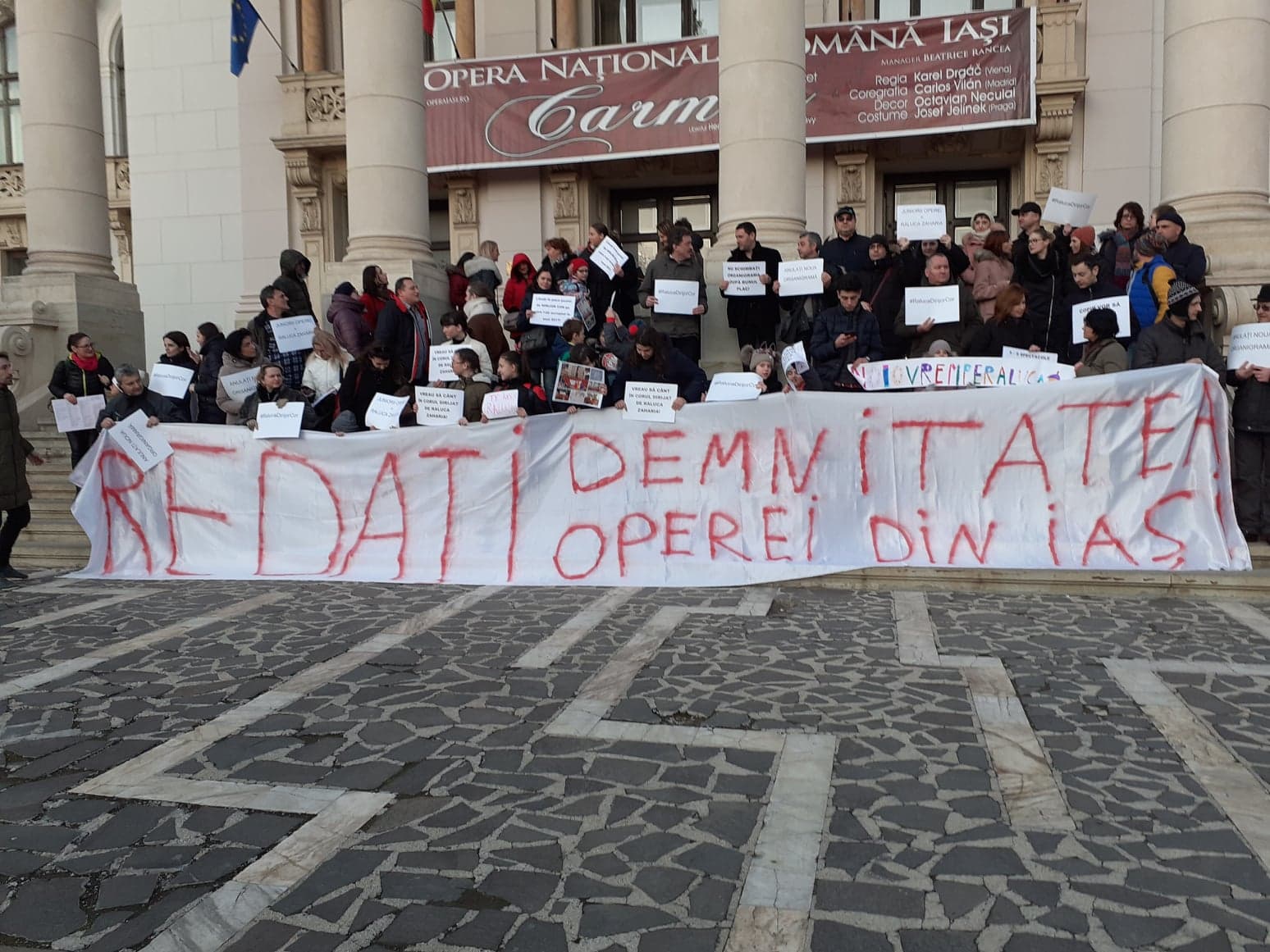 La protestul de astăzi, au participat şi angajaţi ai Operei din Iaşi, solişti, membri ai corului, ai orchestrei şi ai corpului de balet, dar şi foşti angajaţi cărora li s-a desfăcut contractul de muncă. Aceştia au reclamat o serie abuzuri din partea conducerii:   „1Foarte mulţi oameni au fost retrogradaţi, foarte mulţi oameni au fost daţi afară. Dirijorul de cor de la copii acum este în preaviz. I s-a oferit un alt post. Avem aici colegi solişti care au fost daţi afară, au făcut tot felul de procese, au câştigat, unii şi-au dat demisia după aceea, alţii au renunţat la carieră. Sunt abuzuri peste abuzuri. 2Abuzurile pe care le reclamăm, în primul rând abuzurile psihologice, psihice la care suntem supuşi, suntem monitorizaţi de oamenii doamnei, fiecare cuvânt pe care-l scoatem este transformat, au fost oameni daţi afară. În al doilea rând, profesionişti care au fost marginalizaţi, nu au fost lăsaţi să-şi practice meseria, procesele pe care instituţia le pierde de ani de zile cu daune materiale plătite din banul public. 3Am venit să-i susţinem, atât pe Raluca cât şi pe ceilalţi colegi care au suferit aceeaşi nedreptate. Pot să vă spun, de exemplu, că foarte multe adrese s-au făcut către Ministerul Culturii, către ITM, au fost sesizări numeroase în anii trecuţi chiar”.