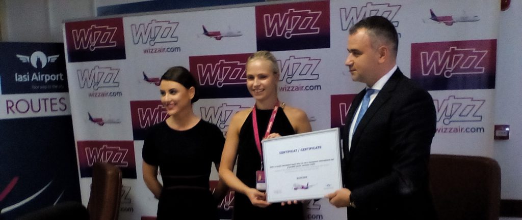 Compania Wizz Air operează pe Aeroportul din Iaşi din decembrie 2014 şi baza inaugurată astăzi este cea de-a şasea din România.