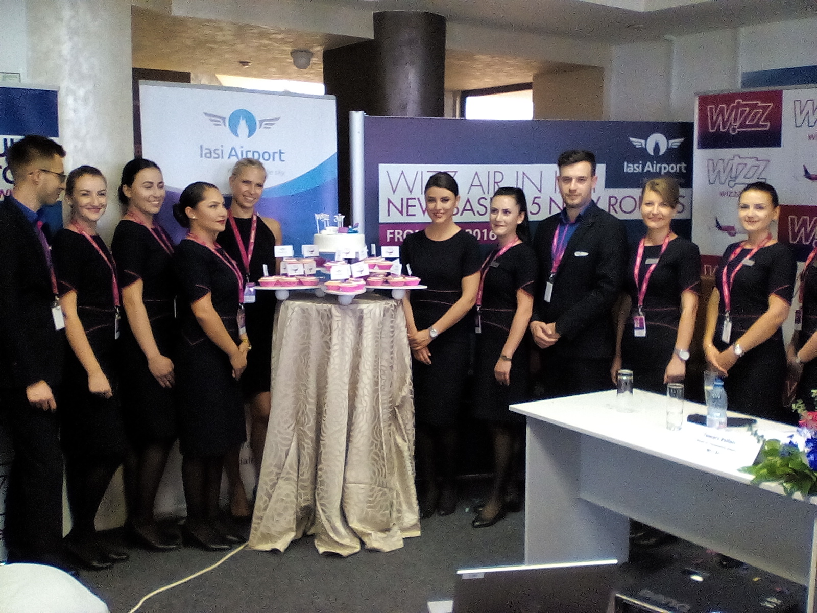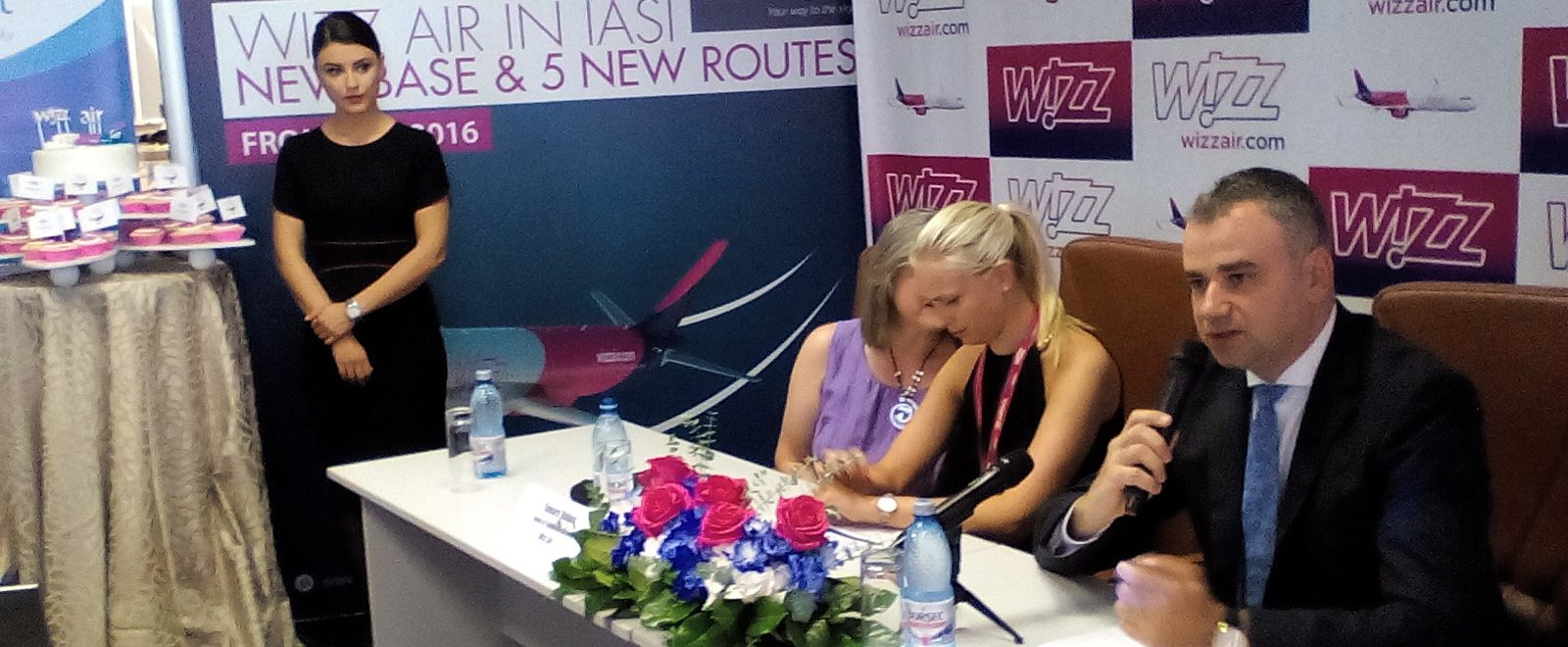 Compania Wizz Air operează pe Aeroportul din Iaşi din decembrie 2014 şi baza inaugurată astăzi este cea de-a şasea din România.
