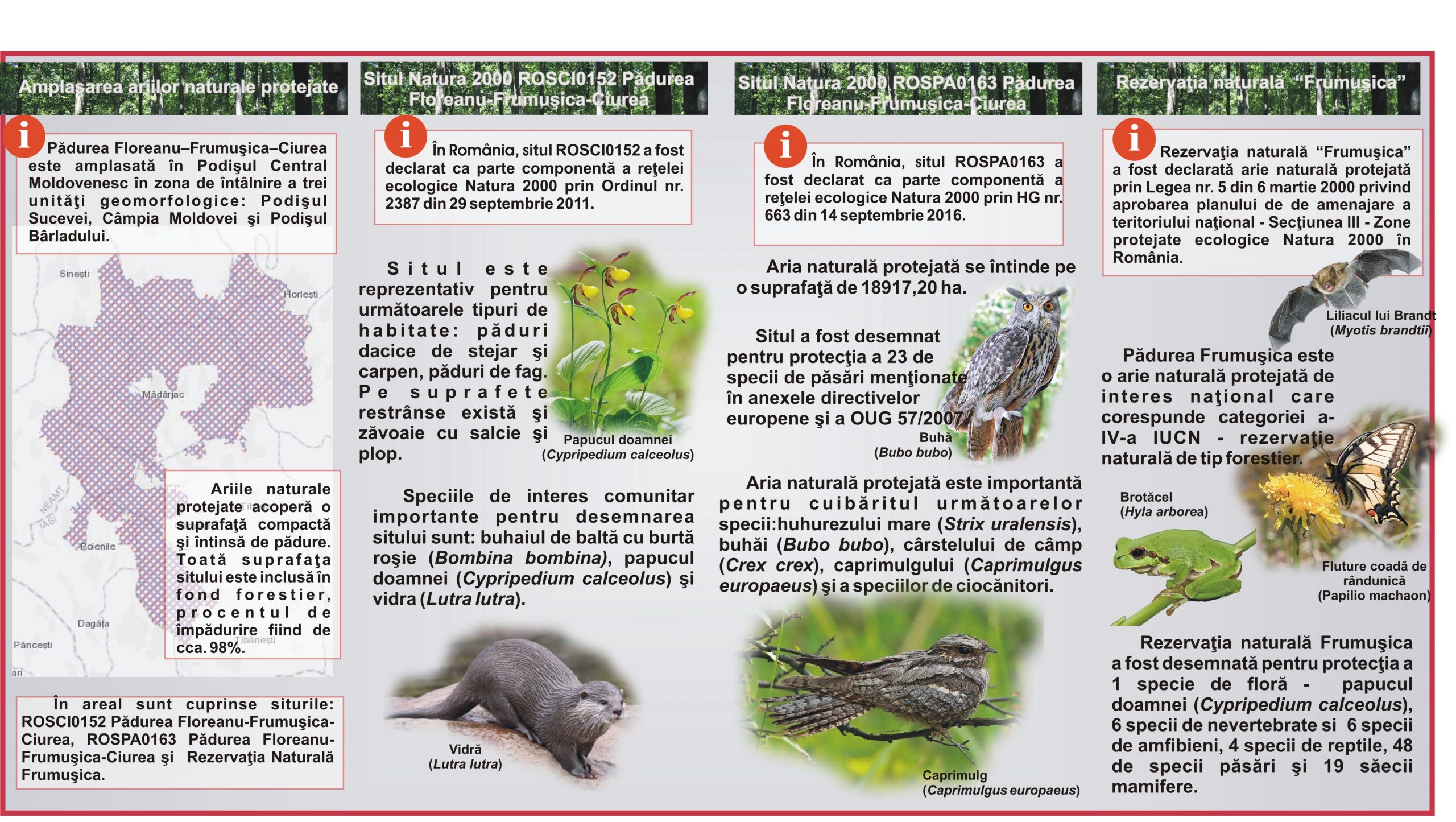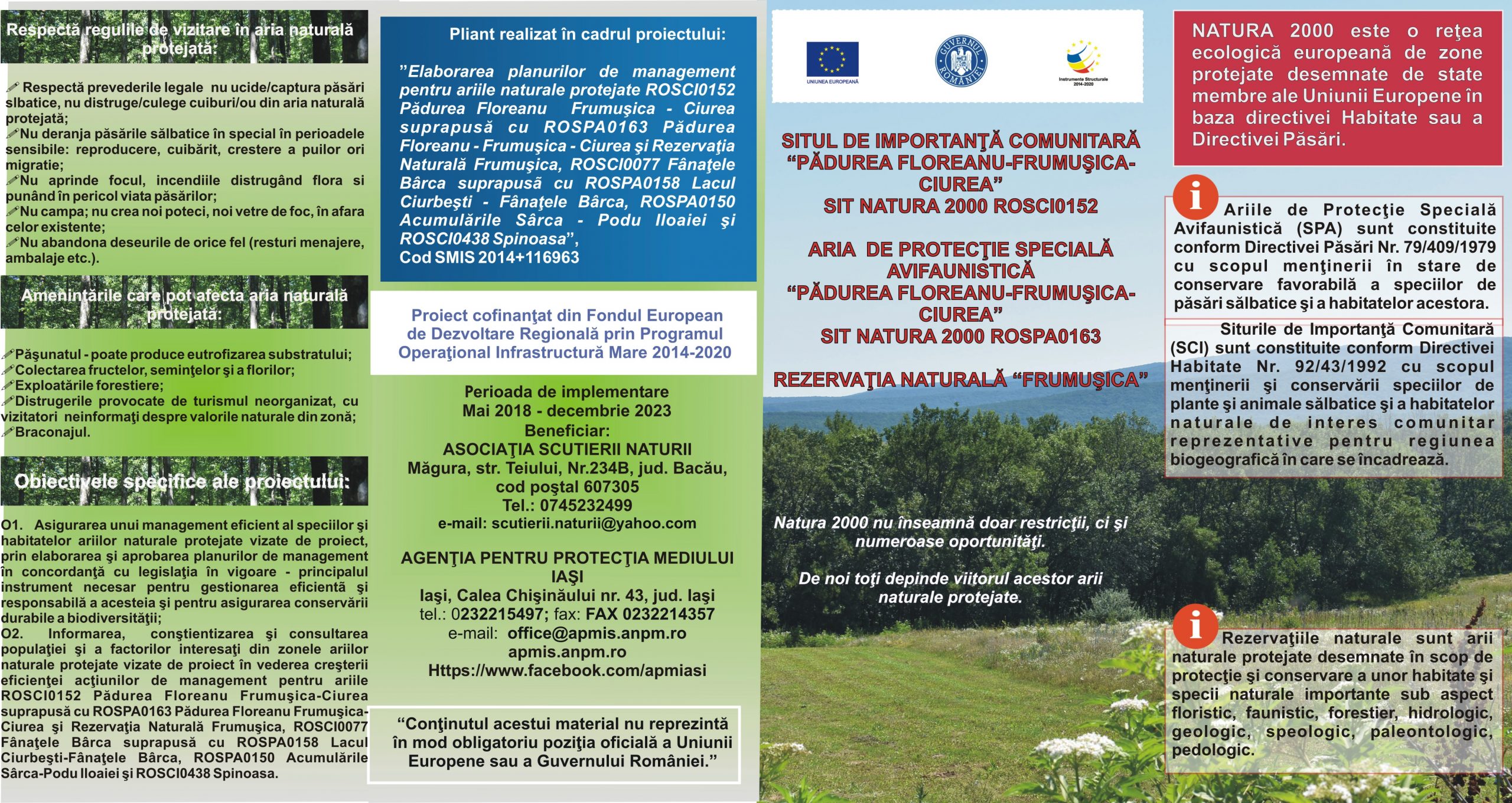 Proiectul ”Elaborarea planurilor de management pentru ariile naturale protejate ROSCI0152 Pădurea Floreanu – Frumuşica – Ciurea suprapusă cu ROSPA0163 Pădurea Floreanu – Frumuşica – Ciurea şi Rezervaţia Naturală Frumuşica, ROSCI0077 Fânaţele Bârca suprapusă cu ROSPA0158 Lacul Ciurbeşti – Fânaţele Bârca, ROSPA0150 Acumulările Sârca – Podu Iloaiei şi ROSCI0438 Spinoasa”, de pe teritoriul județului Iași, Cod SMIS 2014+ 116963, este derulat de către Asociația Scutierii Naturii din județul Bacău, în parteneriat cu Agenția Pentru Protecția Mediului Iași și Agenția Națională Pentru Arii Naturale Protejate.