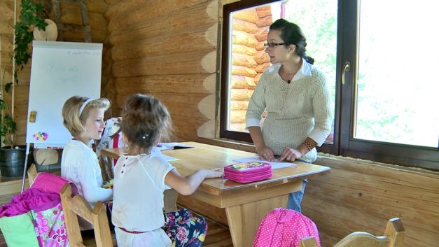 IP: Nu a fost intenţia să construim o şcoală. Am transformat noi o încăpere într-o sală de clasă. Noi ne-am gândit ca în timp să ne construim o bucătărie de vară. Nu ne-am gândit că în aşa scurt timp o să reuşim să o dăm şi în folosinţă ca şi şcoală. Asta datorită faptului că am aflat în luna august a anului trecut că sunt însărcinată şi trebuia să fac ceva pentru că de ieri am intrat în concediu prenatal. A trebui să vină altcineva. Deci, nu îi puteam primi chiar în casa în care am învăţat anul trecut, în sufrageria casei. Lângă casă, în construcţia în care am vrut să facem bucătăria de vară am amenajat împreună cu soţul, o sală de clasă.