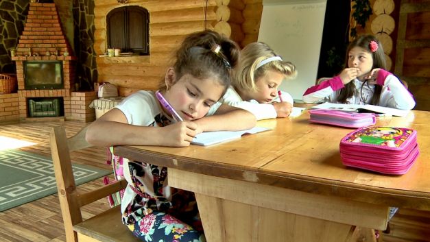 Prin urmare, învățătoarea cu inimă mare a construit în curtea casei sale o școală în care învață 4 copii, de vârste diferite.