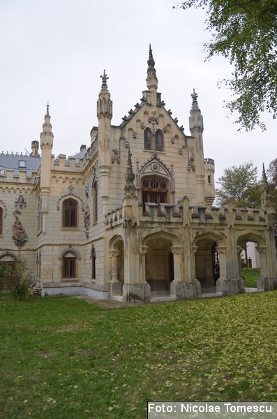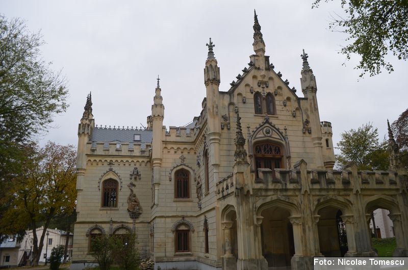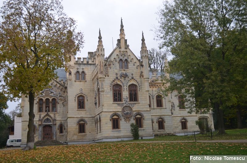 Între anii 1880 și 1904, George Sturdza a construit[12], pe amplasamentul vechiului conac, un palat în stil neogotic târziu[13], amintind de Palatul Culturii din Iași, de Palatul Domnesc din Ruginoasa… „Castelul” adăpostea o colecție valoroasă de cărți (60.000 de exemplare, multe ediții princeps sau rarisime)[14], o colecție de documente, costume medievale, arme, bijuterii, tablouri, busturi din marmură de Cararra, argintărie, piese arheologice, numismatice și epigrafice de mare valoare.