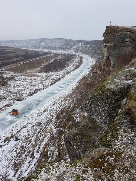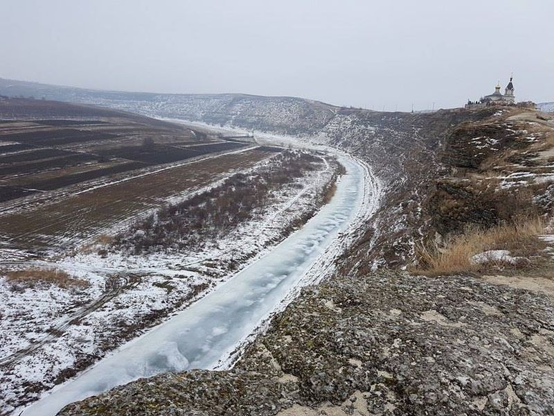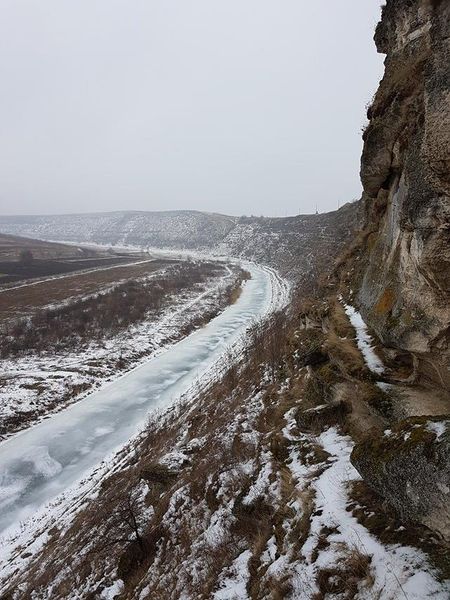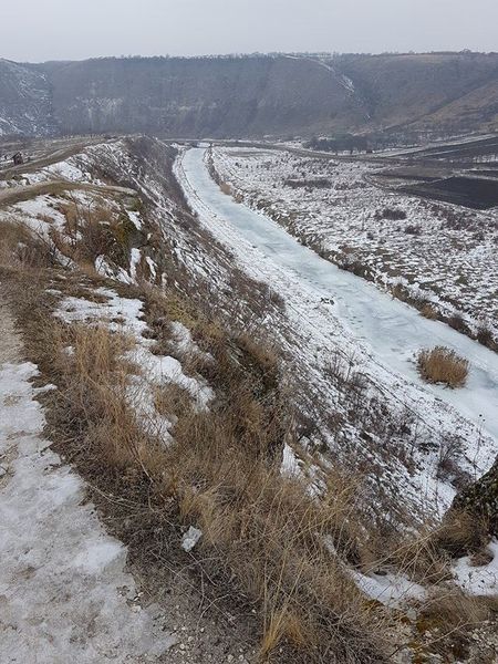 [3] Pe măsură ce se apropie de Nistru, malul stâncos al Răutului devine atât de înalt şi abrupt, încât, pe distanţe mari, pare imposibil să-l coborî sau să îl urci. Se spune că în câteva locuri Nistrul nu îngăduie picior de om. În apropiere de Trebujeni, cursul râului se încolăceşte de o asemenea manieră încât formează o peninsulă rotundă, prinsă numai cu o făşie îngustă de pământ de restul terenului; malul este lin, cu o uşoară urcare spre limba de pământ, care o leagă de împrejurimi; în general, nivelul respectivei porţiuni de pământ este situat mai jos decât nivelul terenului din jurul râului. Malul stâng al Răutului, adică malul opus, este atât de stâncos şi de abrupt, încât formează un zid de apărare naturală, în forma de semicerc…