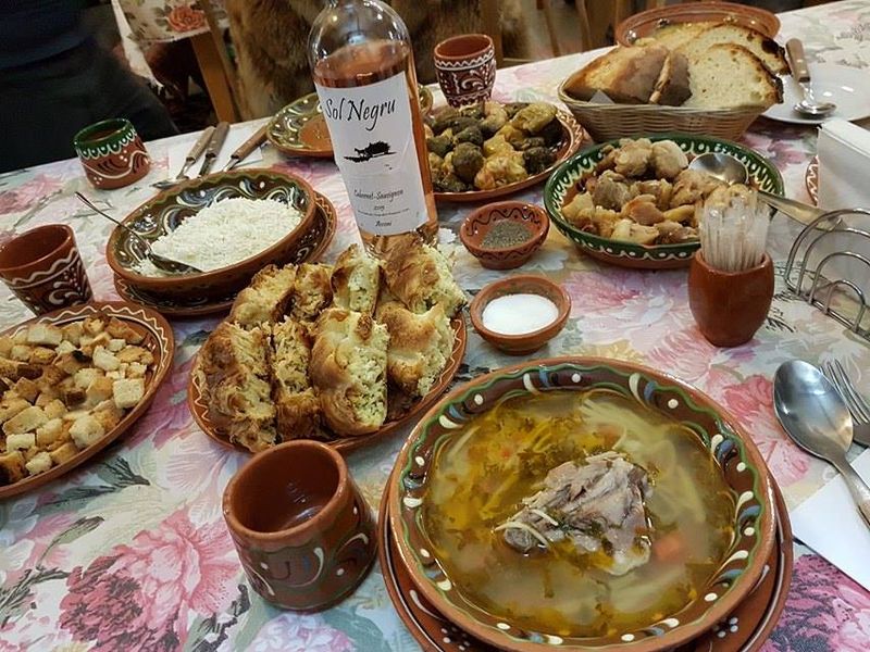[2] Sarmale, ardei copți, friptură, mămăligă, brânză de oi, murături, zeamă (ciorbă) cu tăieței de casă, borș roșu, tocăniță, plăcintă cu brânză, varză și cartofi, pâine și prăjituri de casă… Mâncarea este bio, alimentele nu provin din alte surse decât din fermă (cultivate în grădina proprie), turiștii consumă produse proaspete din carne, lactate, ouă, legume, fructe; doar produse naturale, preparate la cuptor sau la soba cu lemne…