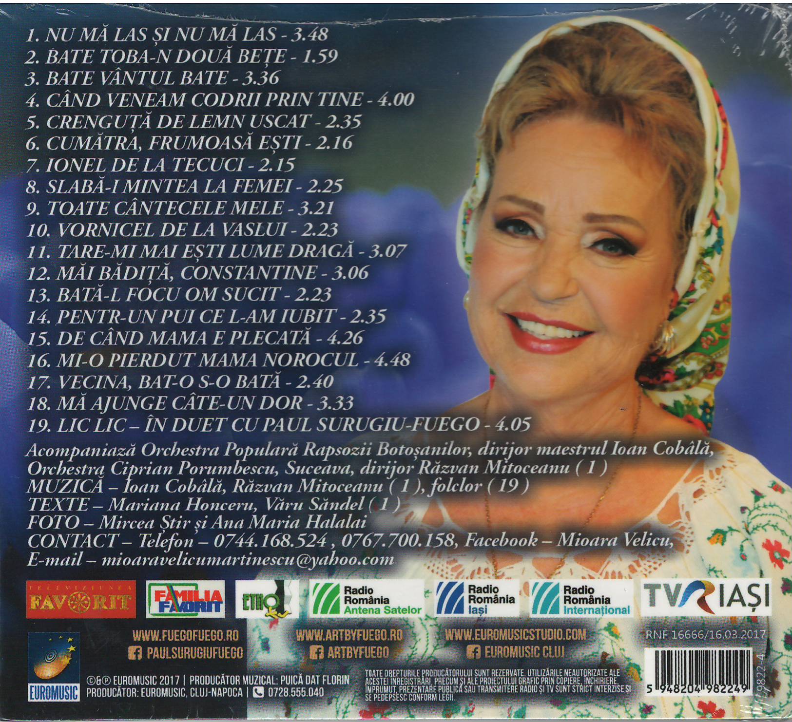 (prima melodie a albumului cu același nume; acompaniază Orchestra „Rapsozii Botoșanilor”, dirijor maestrul Ioan Cobâlă, Orchestra „Ciprian Porumbescu”-Suceava, dirijor Răzvan Mitoceanu; muzica – Ioan Cobâlă, Răzvan Mitoceanu; texte – Mariana Honceru, Văru Săndel; foto – Mircea Știr și Ana Maria Halalai)
