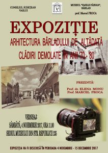 Bârlad, 4 Noiembrie 2017: Expoziţia „Arhitectura Bârladului de altădată. Clădiri demolate în anii ’70 – ‘80”