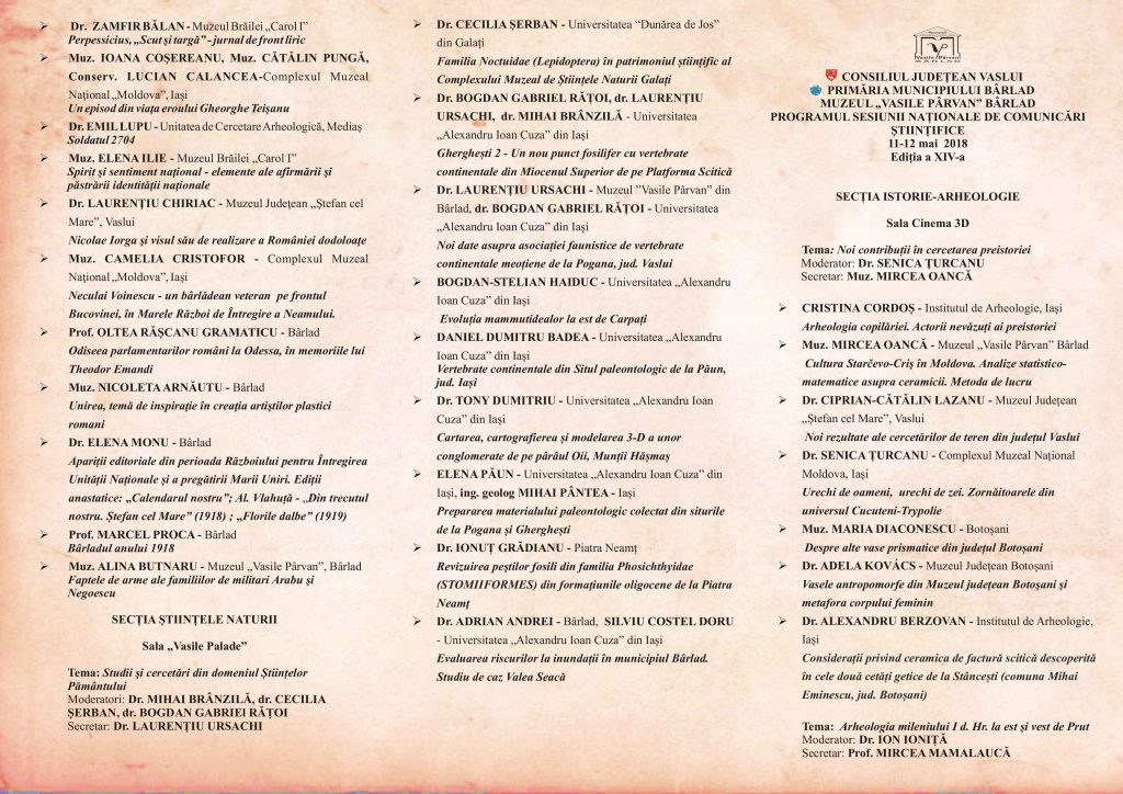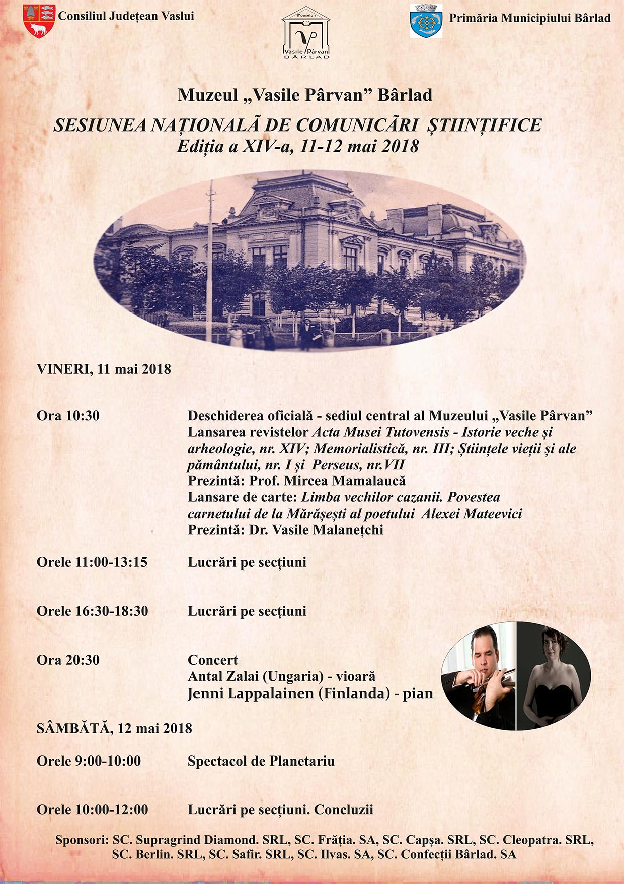 Bârlad: Sesiunea Națională de Comunicări Științifice, Ediția a XIV-a/11-12 mai 2018